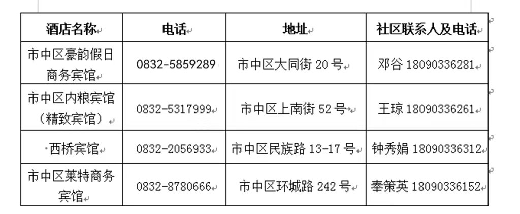 自9月9日0时至9月11日24时,内江市市中区中心城区城东街道、城西街道、玉溪街道、牌楼街道、乐贤街道区域全面加强疫情防控。市中区的外地滞留人员已住酒店的请续住至9月11日24时,未入住的人员请自行前往市中区豪韵假日商务宾馆、市中区内粮宾馆(精致宾馆)、西桥宾馆、市中区莱特商务宾馆入住至9月11日24时。