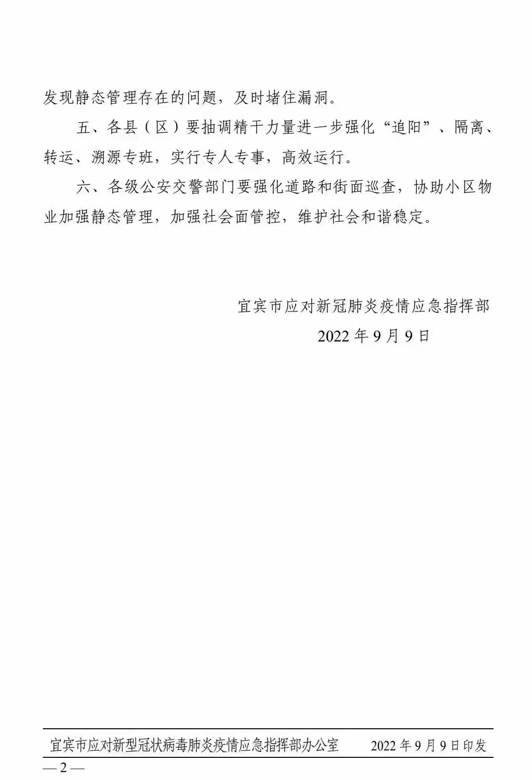 9月9日,宜宾市应对新冠肺炎疫情应急指挥部发布《关于在全市进一步开展全城静态管理的紧急通知》,通知内容如下: