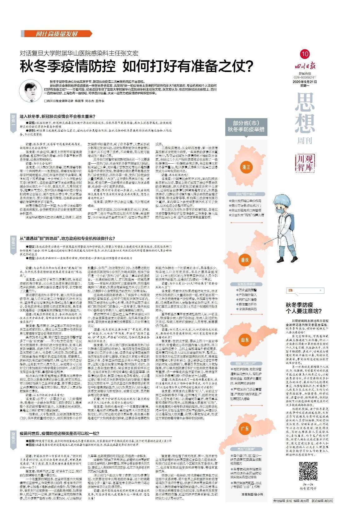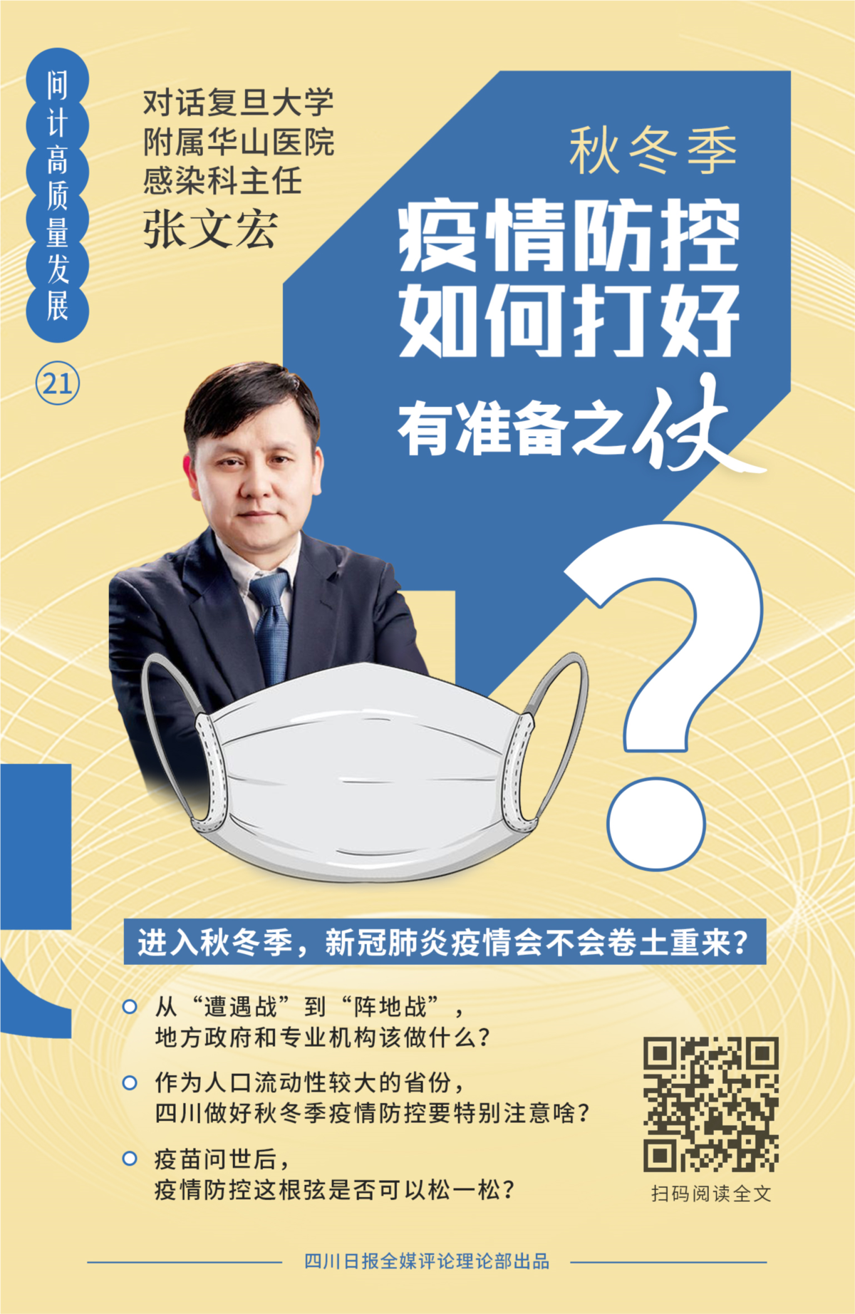 新冠肺炎会像其他呼吸道疾病一样在秋冬季易发、高发吗?新一轮疫情卷土重来的可能性有多大?地方政府、专业机构和个人该如何打好有准备之仗?……带着问题,记者近日专访了复旦大学附属华山医院感染科主任张文宏。张文宏认为,在应对新冠肺炎疫情上,四川一直做得很好,上海也有一些经验可供四川借鉴,大家一起努力把疫情防护网织密织牢。