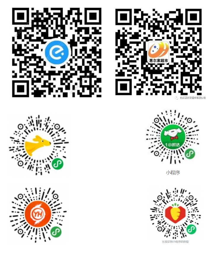 广大市民可使用微信扫描以下部分线上生活物资供应平台二维码,进行生活物资线上采购。