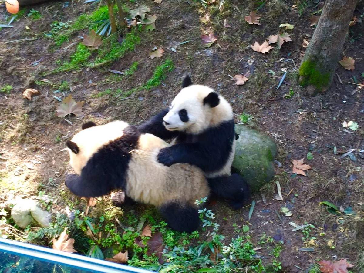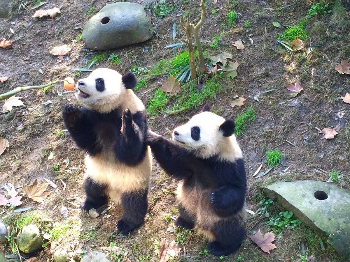 两只熊猫宝宝在玩耍。川报观察记者 王向华 摄
