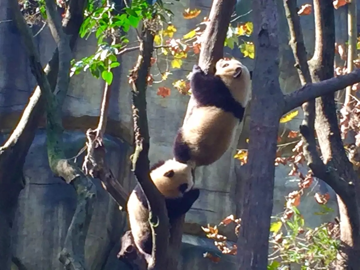 在树上追逐的熊猫姐妹。川报观察记者 王向华 摄