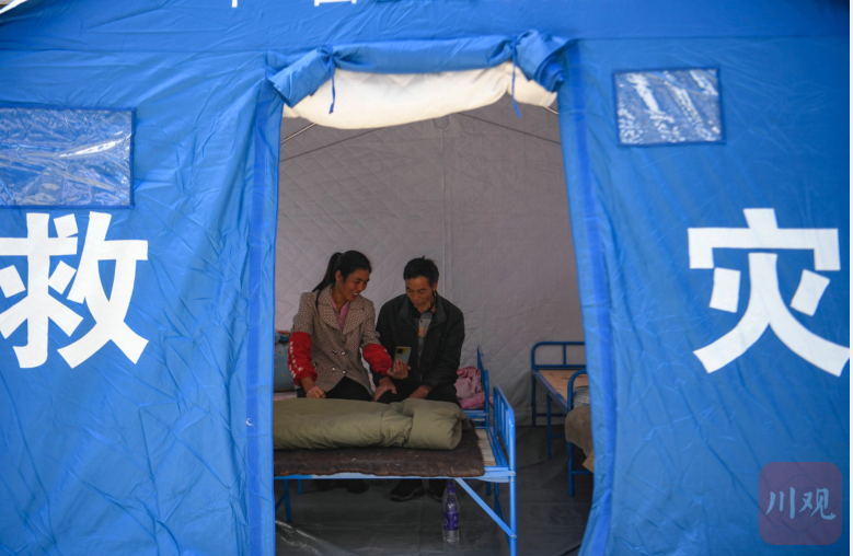距离草科乡中心小学4.5公里外的石棉县和坪村安置点,村民李俊阳夫妇正在给女儿打视频电话:“我们都挺好的,不用担心我们,你们要照顾好自己。”