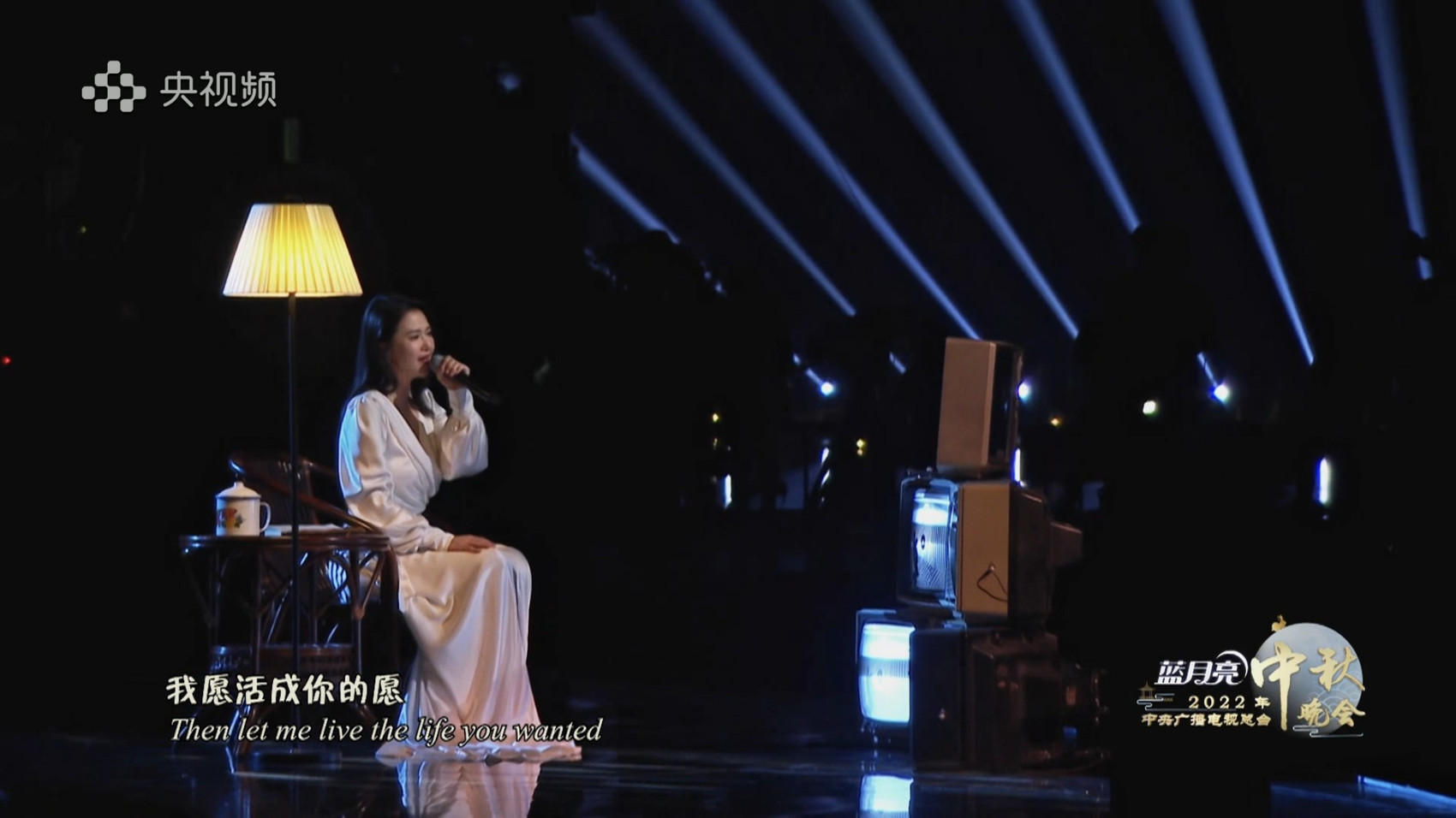 川籍歌手谭维维身着白色月光般的礼服,演唱电影《我和我的父辈》主题推广曲《如愿》:“愿你所愿的笑颜,你的手我蹒跚在牵,请带我去明天……”谭维维说,自己在家过中秋节时,最喜欢赏月这个仪式,因为觉得特别浪漫。对于此次表演,她觉得特别像一个温馨小电影,“我们既是电影中的人,我们又在看电影”。
