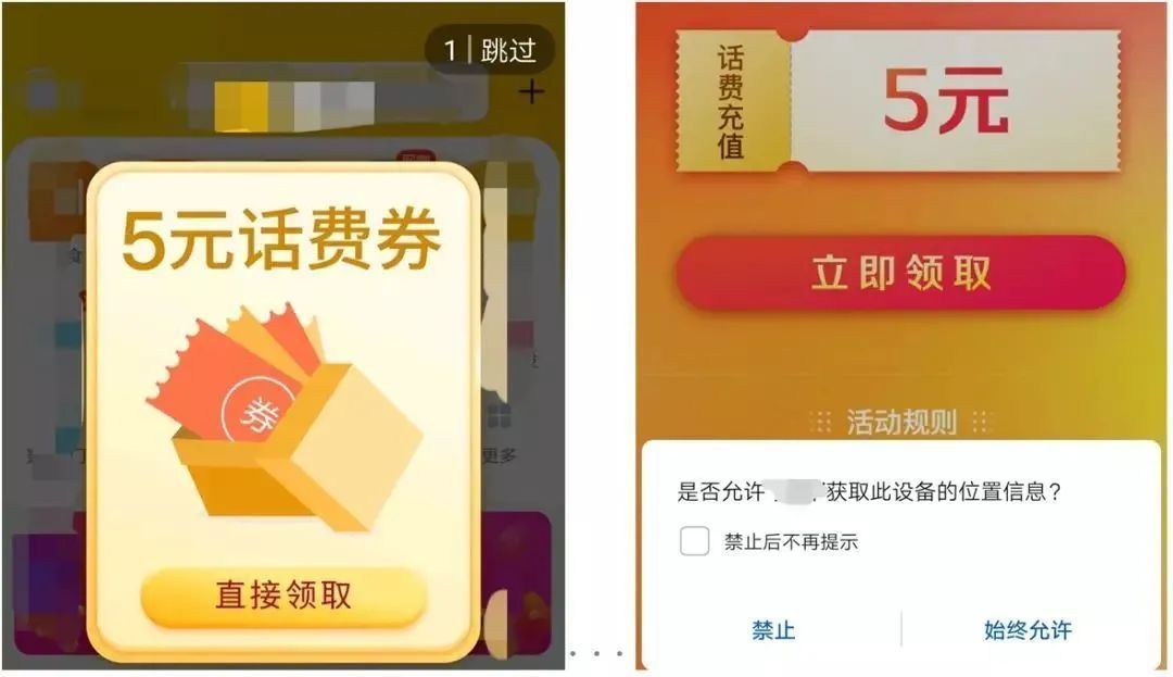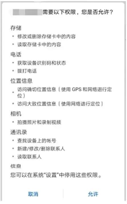 2.留心查看App申请打开权限时以弹窗等方式提示使用该权限的目的是否合理。