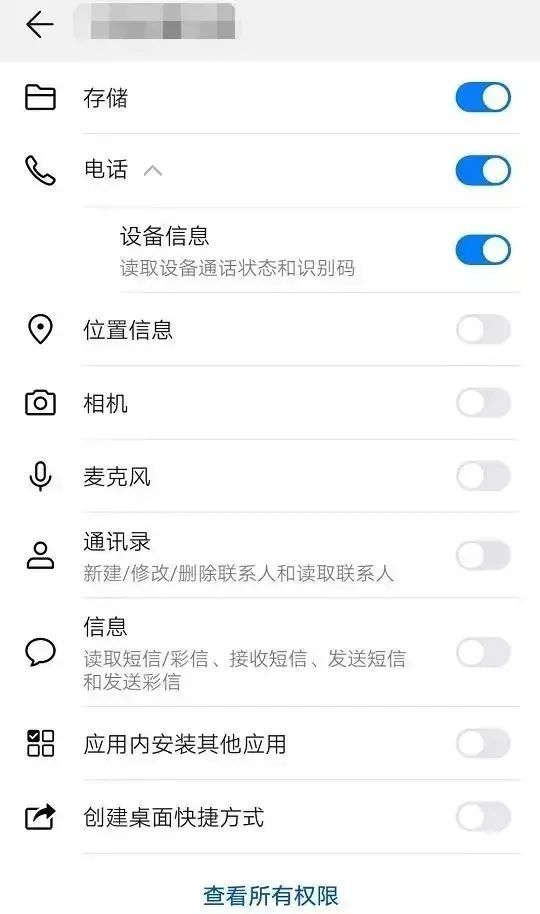 3.对于已经在使用的App,可以在“设置”-“应用管理”中查看其已打开的权限情况,可关闭与App某类业务功能不直接相关的权限或不常用到的权限。