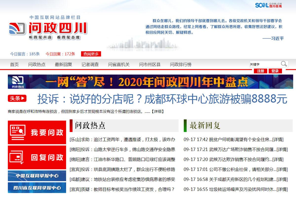 问政四川是本地最具权威性和影响力的网络问政与舆情应对平台,已入驻单位3000+家。