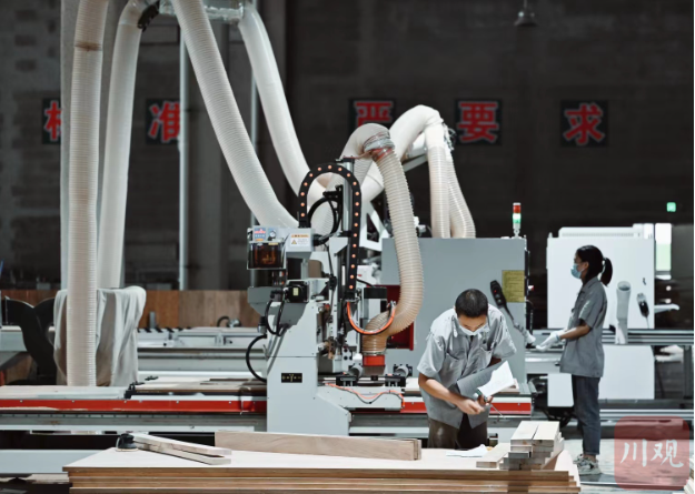 9月9日上午,记者来到广元市昭化区,走进西南最大家居产业城“中国西部(广元)绿色家居产业城”中的龙头家居企业——美好世家(四川)家居有限公司时,见到如此“拼”的一幕。