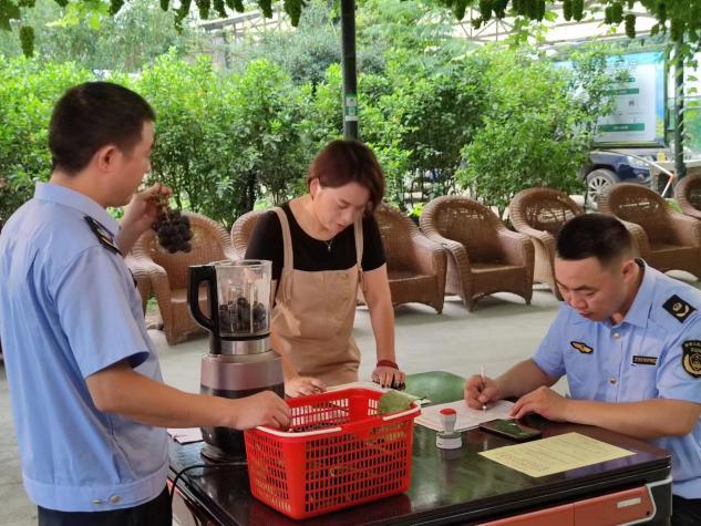 农场配备有农残速测仪器设备、确定了质量控制内检员,在葡萄上市前运用快检新技术,确保其农药残留符合标准。“传统农残快检仅能检测有机磷类和氨基甲酸酯类农药,这两类农药在水果种植过程中很少使用。我们针对葡萄种植常用农药,使用农药残留胶体金免疫速测技术,靶向精准检测。”邓杨勤说,通过胶体金速检,做到了“用什么药、检什么药”,弥补了传统农药残留检测漏洞与短板。