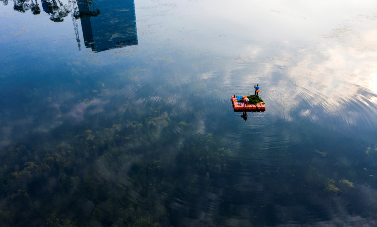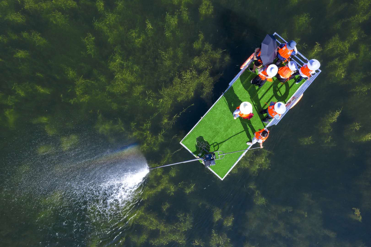 水质变好还不够,还要让优良水质可持续。泸州北控环保公司请来专业化运维团队,每天对公园进行运营和维护。其中就包括专门清理湖面的一帮“水上美容师”。