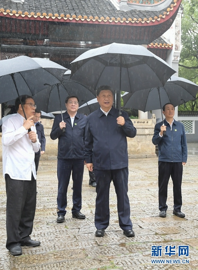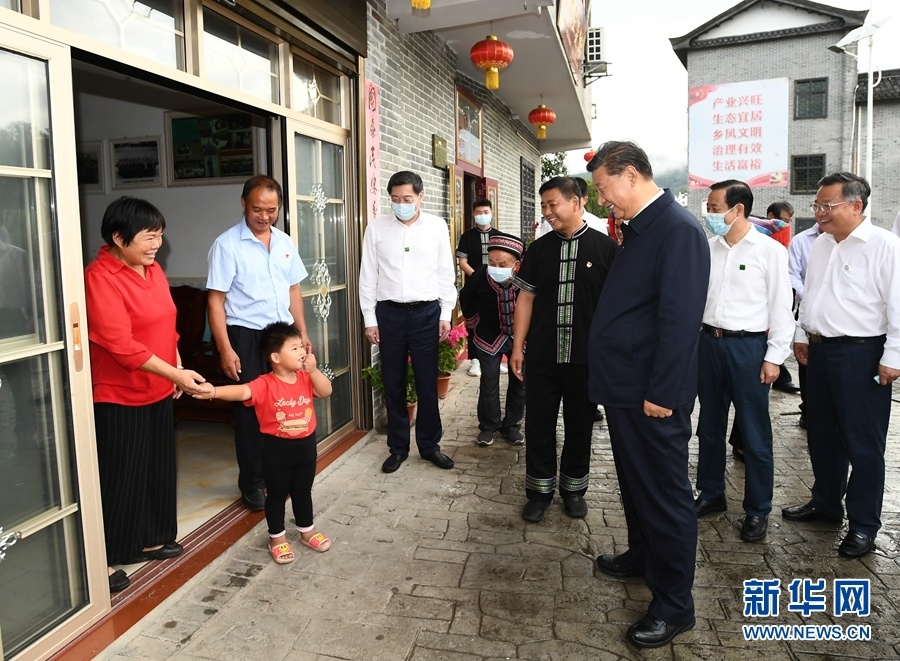9月16日至18日,中共中央总书记、国家主席、中央军委主席习近平在湖南考察。这是16日下午,习近平在郴州市汝城县文明瑶族乡沙洲瑶族村察看村容村貌,同村民亲切交谈。新华社记者 谢环驰 摄