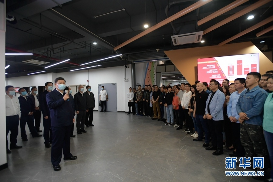 9月16日至18日,中共中央总书记、国家主席、中央军委主席习近平在湖南考察。这是17日下午,习近平在马栏山视频文创产业园考察时,同青年从业人员亲切交流。新华社记者 李学仁 摄