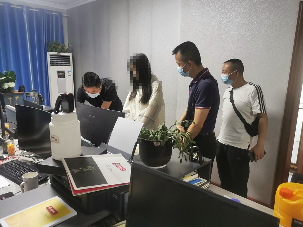 苍溪县农业农村局执法人员协助公安在在河南郑州对假农药标签设计人员抓捕现场