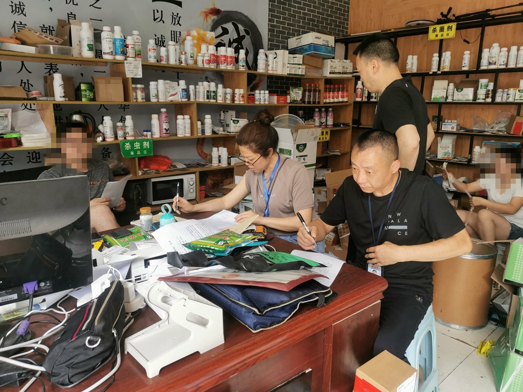 7月是农作物追肥和病虫害防治的关键时期,此时农药销售进入旺季。当天,按照工作计划,唐志刚和同事熊朝宣来到苍溪县某乡镇,对全镇4个农资售卖门市部进行种子、农药产品质量巡查,查生产日期、看标签、核实进货渠道等,一上午排查了3个门市没有发现异常。