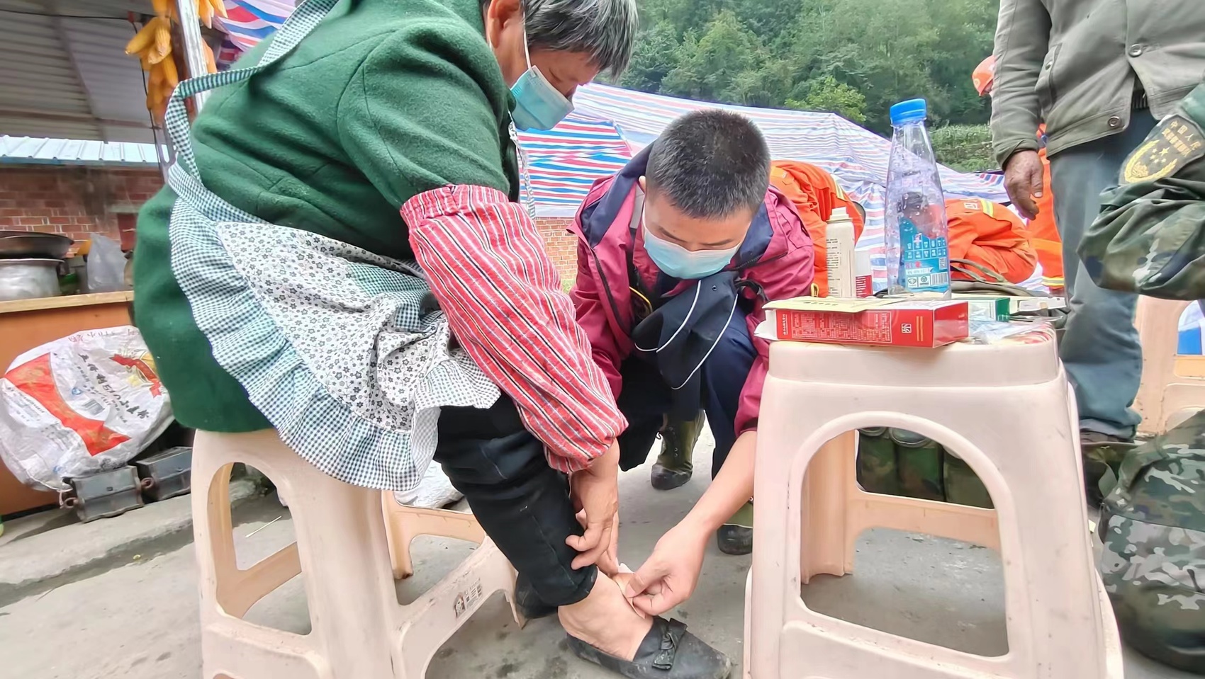 张爱民也第一时间报了名。“大概是5号晚上10点过到达的石棉县中医医院。”张爱民回忆道,前两天大多是在熬制中药,并分发到受灾群众的手中。偶尔也会处理一些轻微外伤的受灾患者。