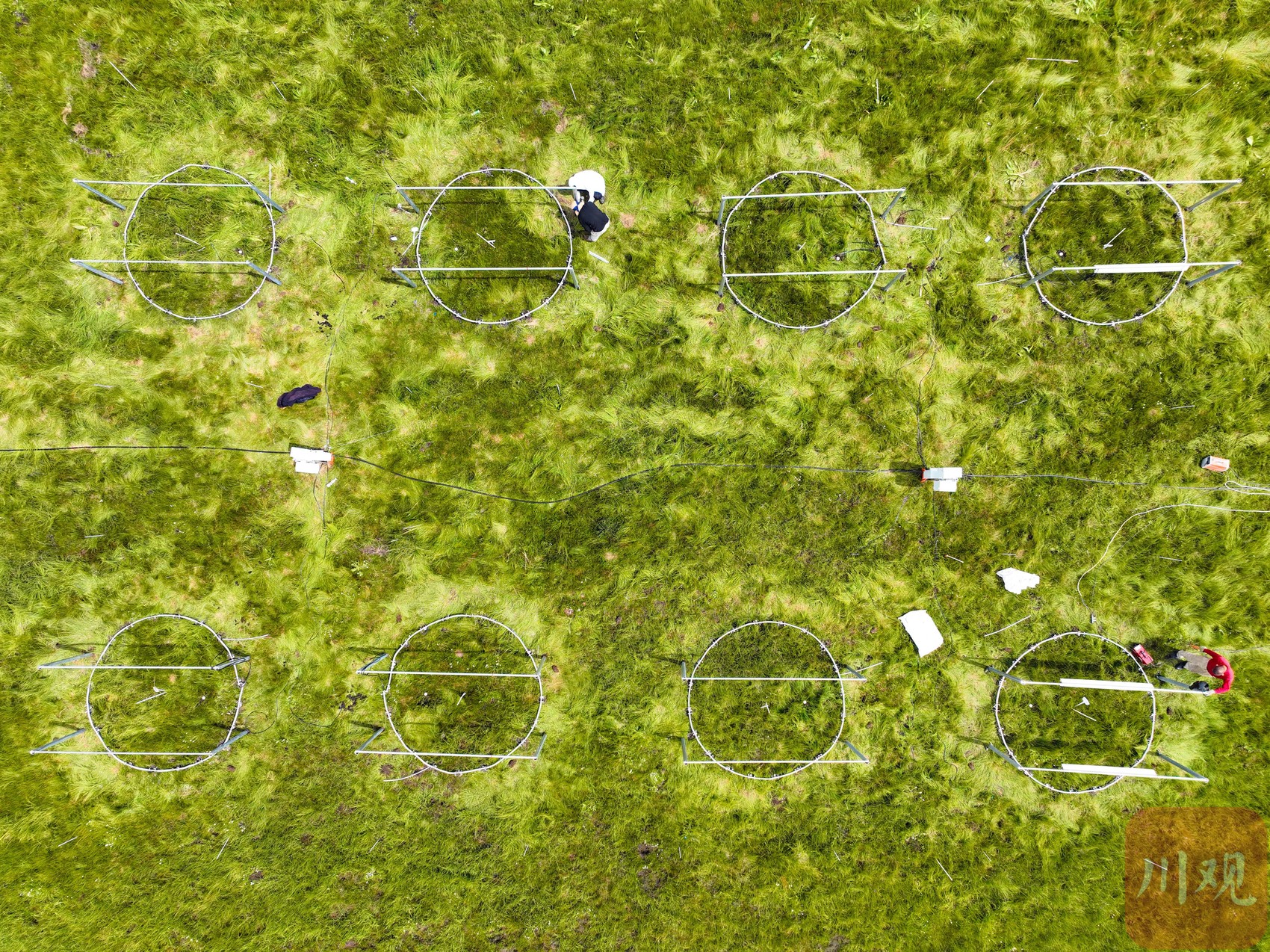 为了研究高寒湿地生态系统碳汇能力对全球变化如何响应,2014年,若尔盖站站长、中科院地理所研究员牛书丽团队,在这里建立了一系列的模拟气候变化的控制实验。