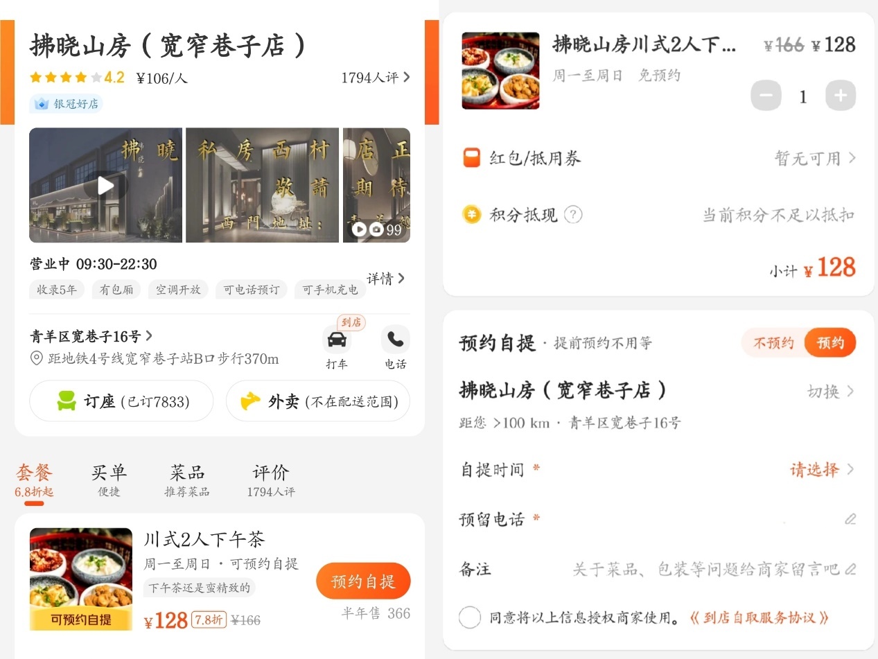据悉,餐饮平台也在积极行动,推出预约自提功能等举措,帮助成都商家开拓新的经营模式,提升风险抵抗能力。目前,全市已有近800家餐厅通过美团上线了到店自提服务。