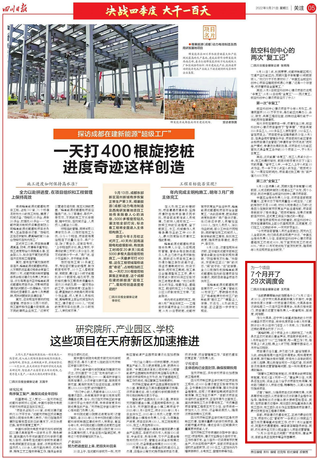 “随着竣工期限越来越近,开调度会的频率越来越高,变成3至4天开一次。”唐金声介绍,大英县还在土地、资金上全力给予该项目优先保障,相关部门提前介入项目过程,特事特办,从简从快高效推进项目。