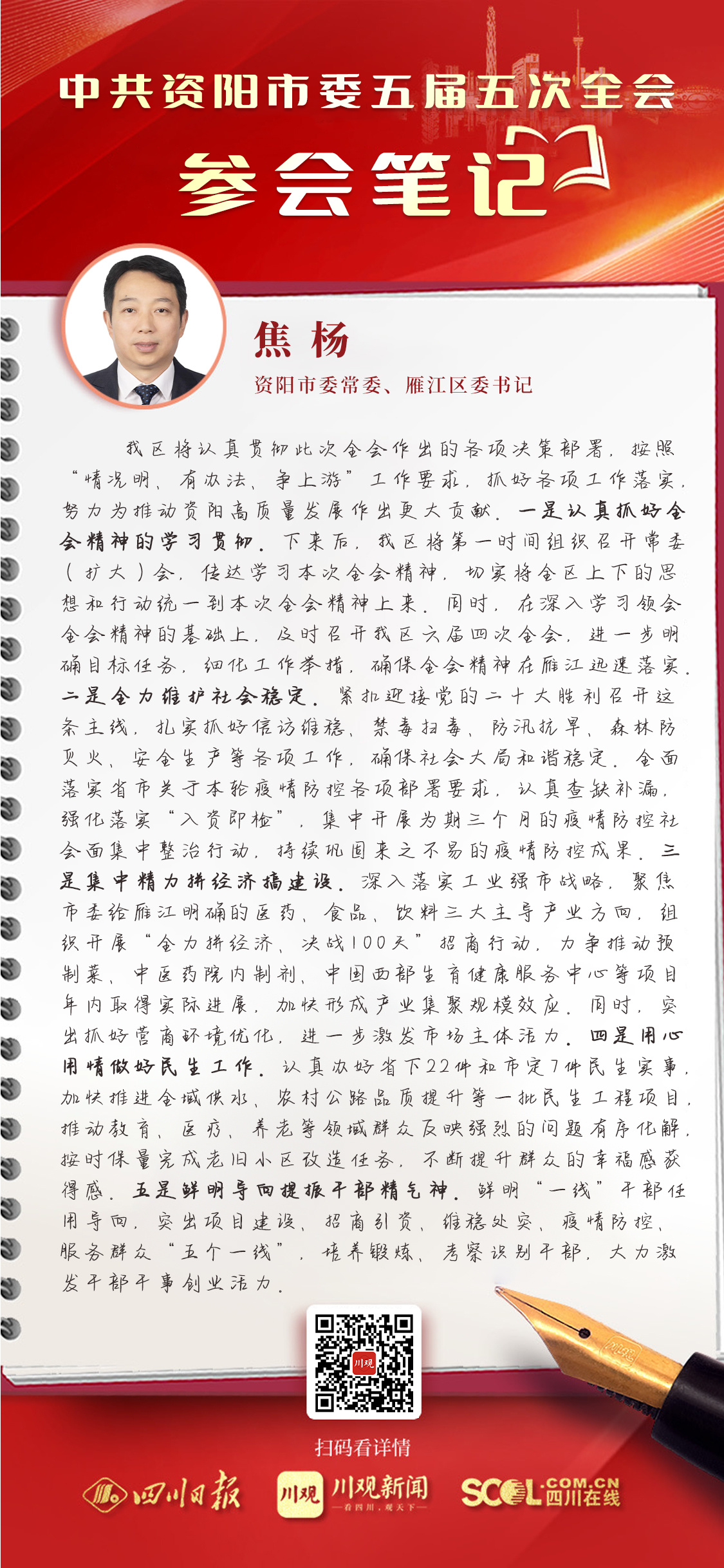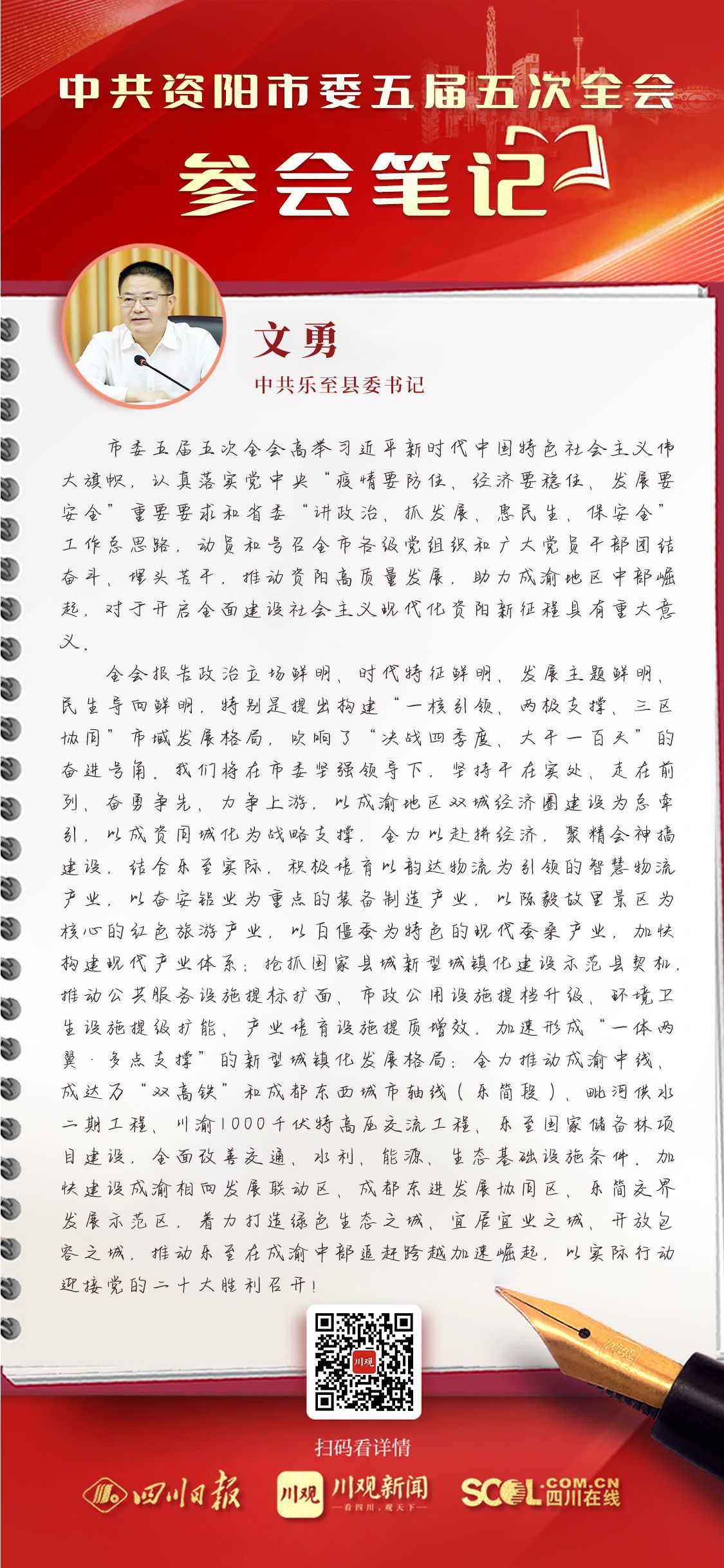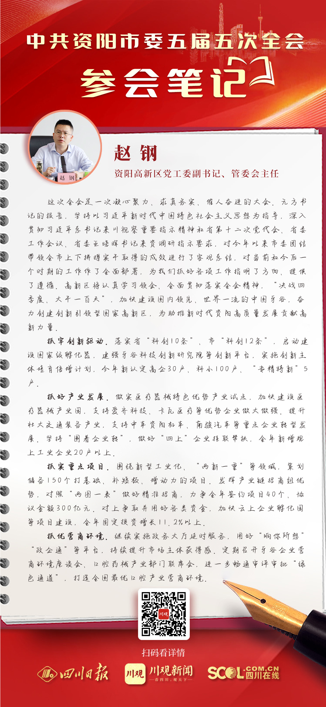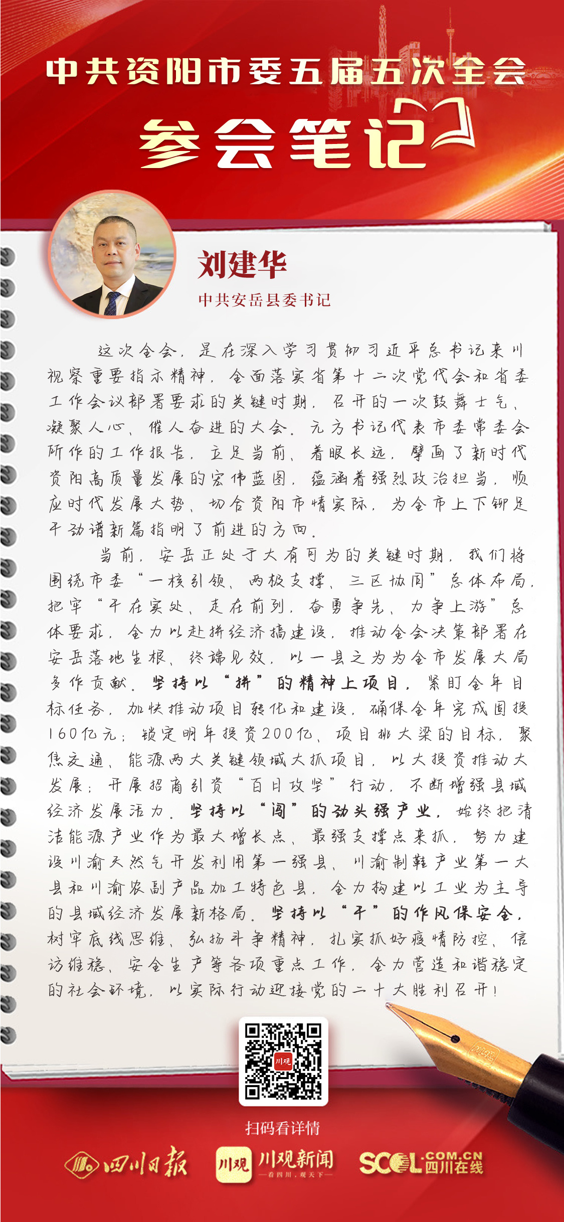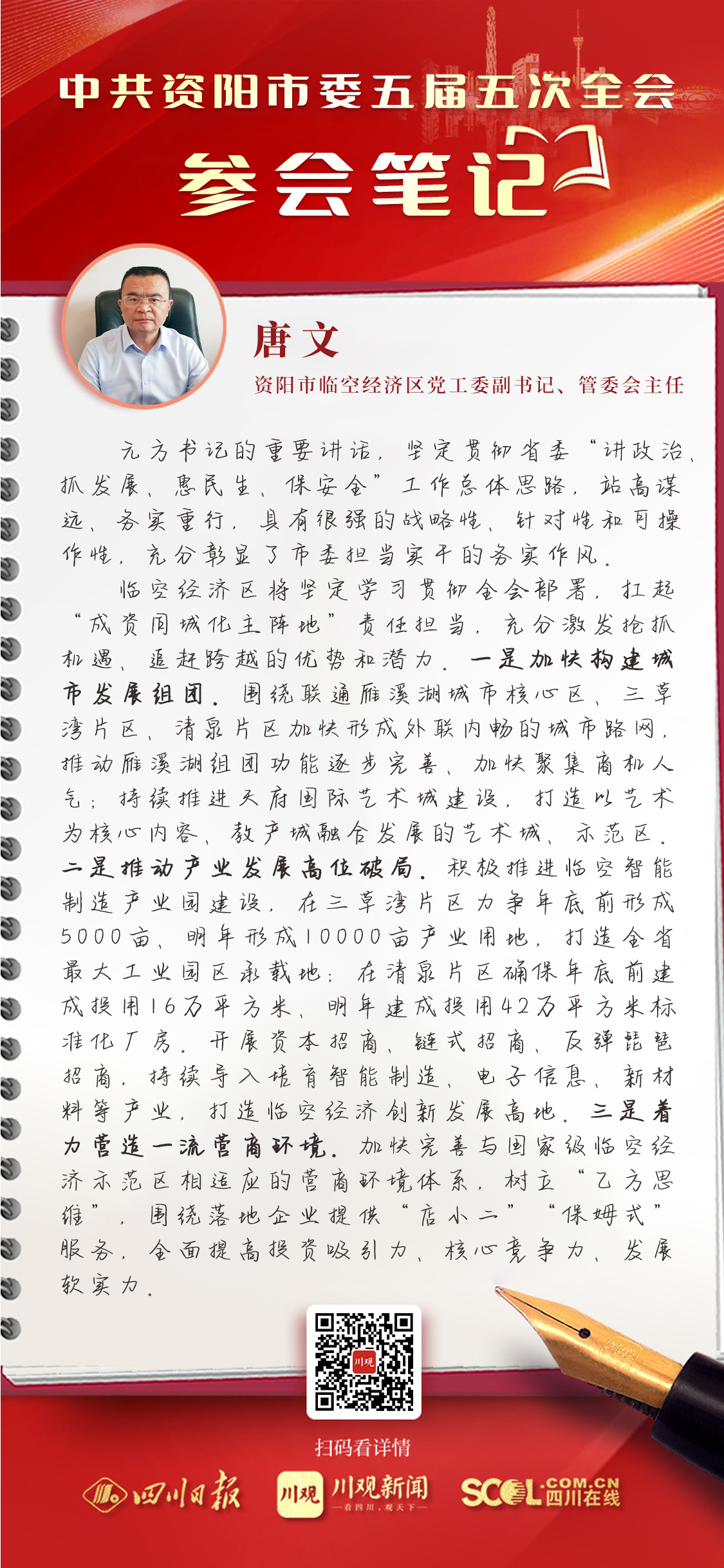 谈感受、话发展,如何推动全会部署落地落实,来自雁江区、安岳县、乐至县、高新区、临空经济区的主要负责人都“写”了哪些笔记,一起来看看吧↓↓