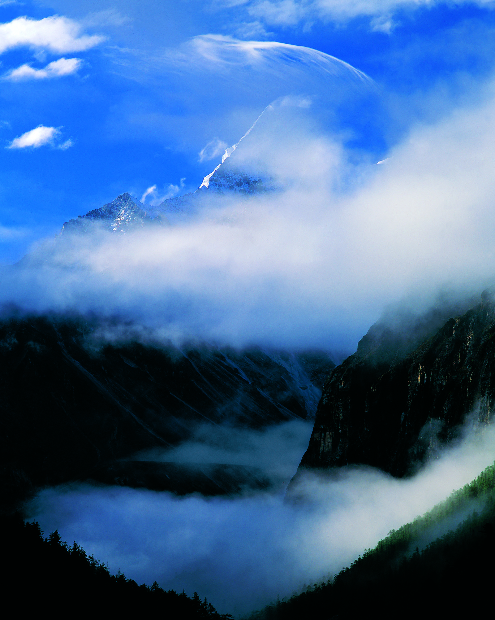 稻城亚丁·云雾中的夏诺多吉(吕玲珑 摄)