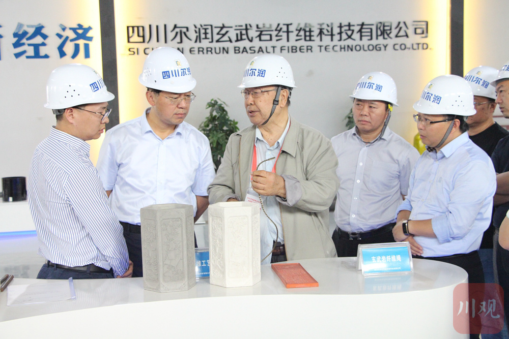 周丰峻一行先后深入四川尔润玄武岩纤维科技有限公司、四川开炭新材料科技有限公司,细致考察企业产品,了解企业发展现状、人才建设以及遇到的瓶颈,并及时给出合理的意见和建议。