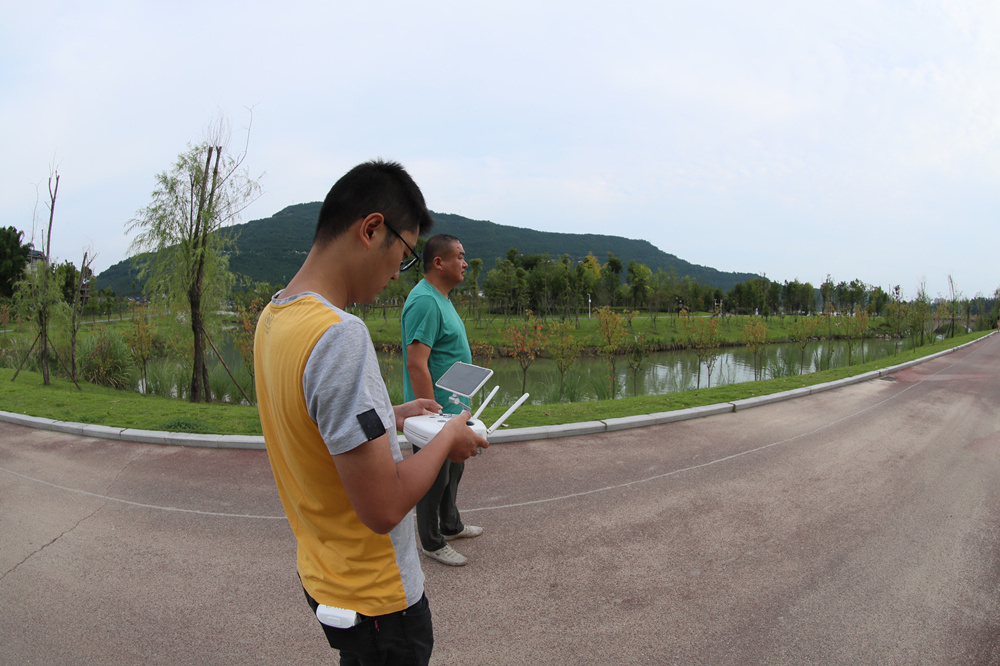 “往下一点,再往左一点,再往前一点,再拍几张照片……”9月21日,在东河“入口处”的桥溪乡交界处,苍溪县水利局干部胡经纬正在精准操作无人机,对“源头”进行“空中侦察”,具体掌握东河流域分界水域的情况,一旁指挥的是该局副局长靳德志。