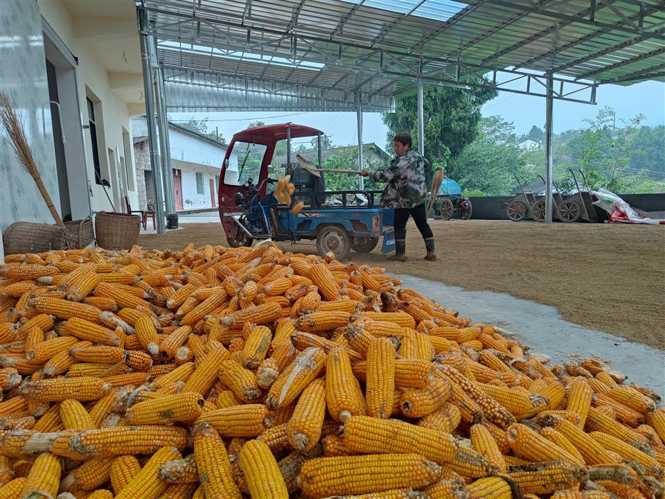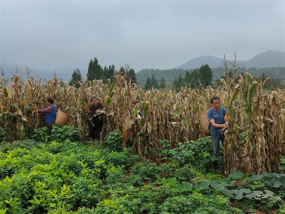 最近一段时间正逢阴雨天气,在德阳市旌阳区双东镇二百钱村的德阳市旺茂农业种植专合社,管理人员正在组织村民利用雨后的间隙,抓紧采摘成熟的玉米。“今年干旱严重,我们采取了一些应对措施,收成基本上还是可以。”专合社管理人员尹凤明说。