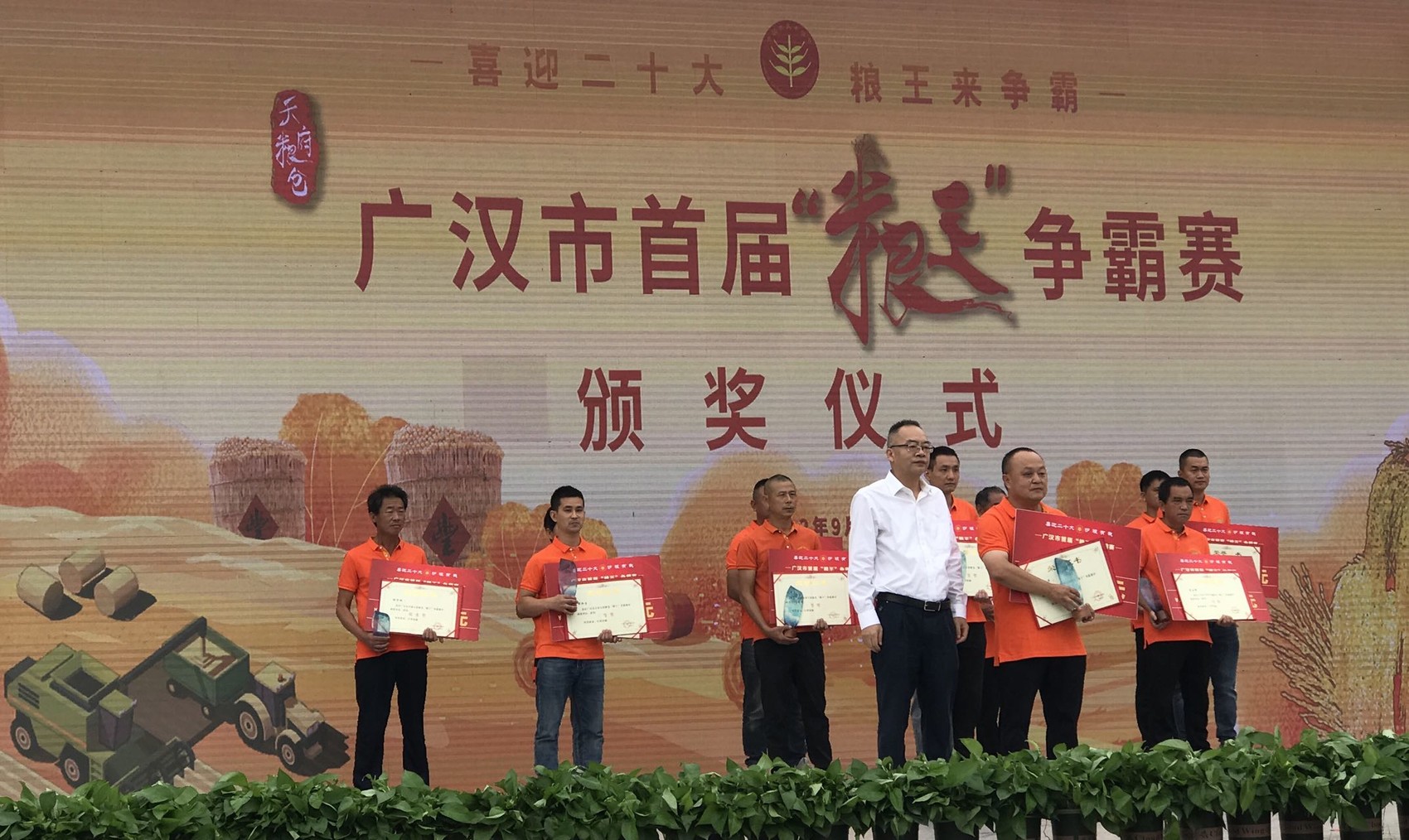 9月22日,持续半个月的广汉市首届“粮王”争霸赛迎来颁奖时刻。12名种粮大户容光焕发地走上颁奖台,他们以水稻亩产普遍超过750公斤、最高亩产801.47公斤的佳绩赢得了“粮王”的荣誉,而长期指导他们生产的12名省、市、乡镇农业专家也名至实归获得了“护粮使者”的光荣称号。