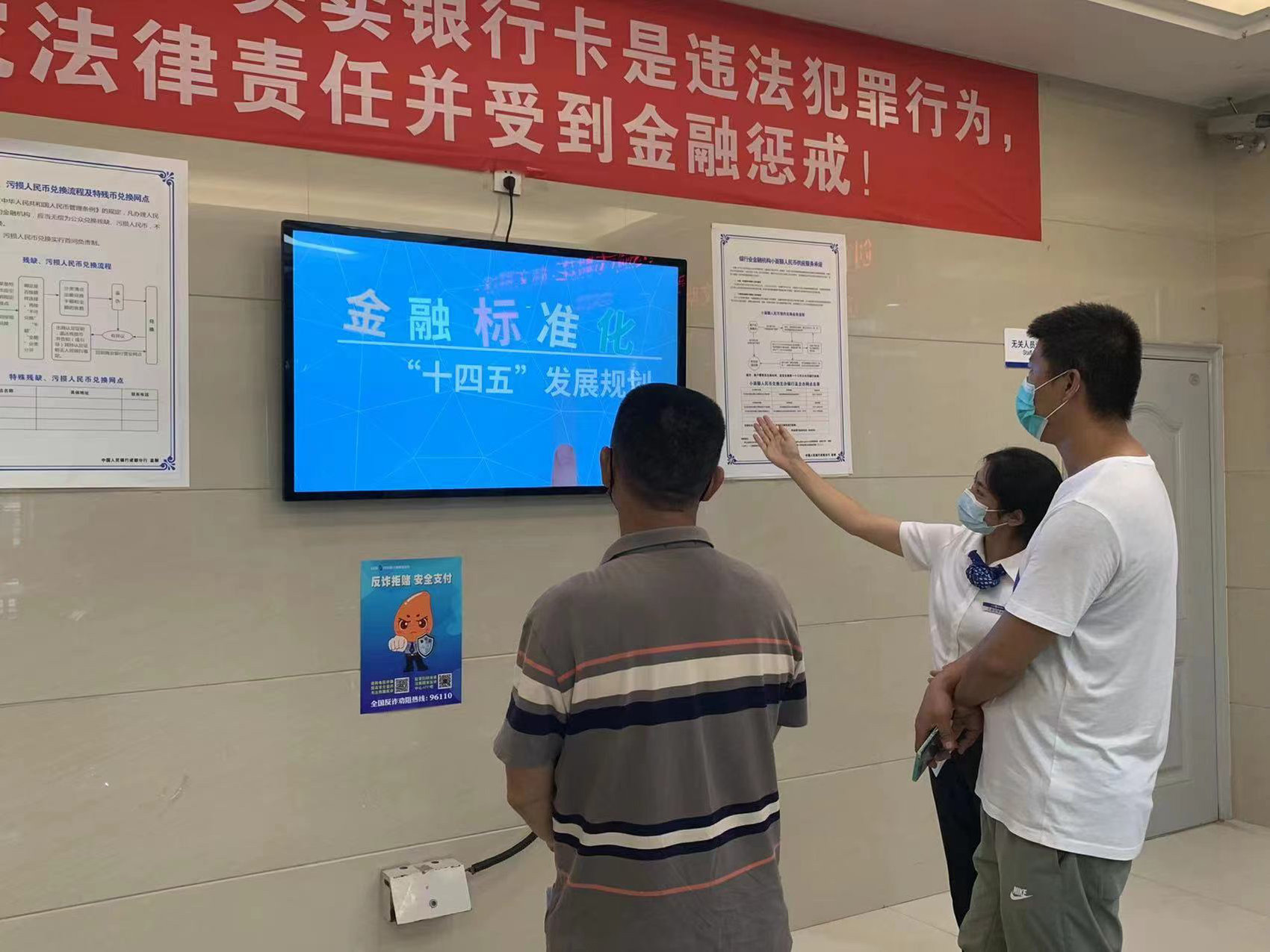 走进四川银行攀枝花分行办公区和营业场所,LDE宣传屏、宣传折页、宣传海报清晰展示着活动相关的主题和内容。另一边,工作人员邀请办理业务的客户在等待期间观看科普视频,宣传金融标准理念。