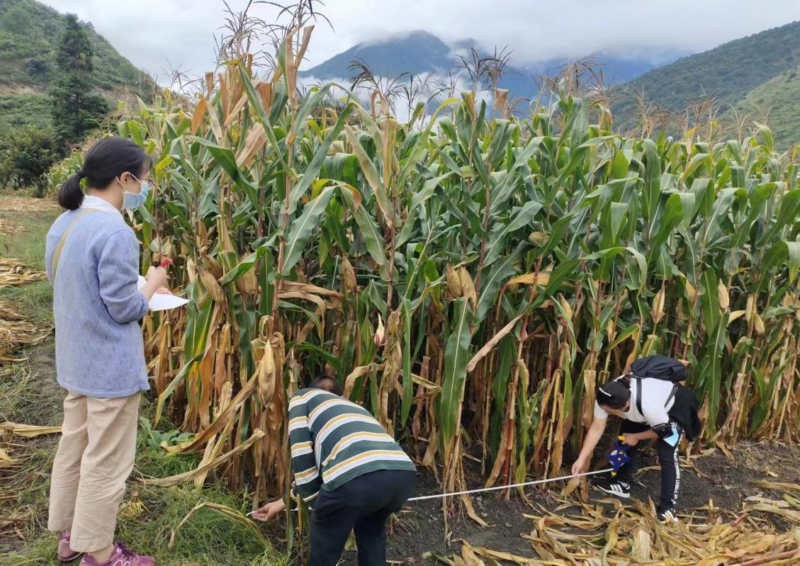 泸定县农牧农村和科技局农技人员对玉米进行测产。