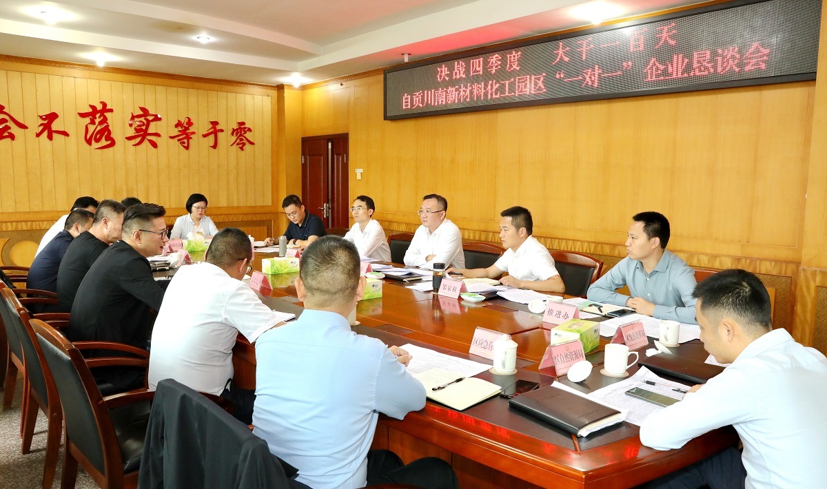 为认真贯彻落实省委“决战四季度,大干一百天”决策部署,根据市、区指挥部要求,9月22日,沿滩区委副书记、区长、区川南新材料产业基地建设指挥部执行指挥长廖东主持召开自贡川南新材料化工园区“一对一”企业恳谈会,各企业代表直言问题困难、畅谈发展现状,就企业落地手续办理、项目建设推进、下一步工作计划进行恳谈交流。