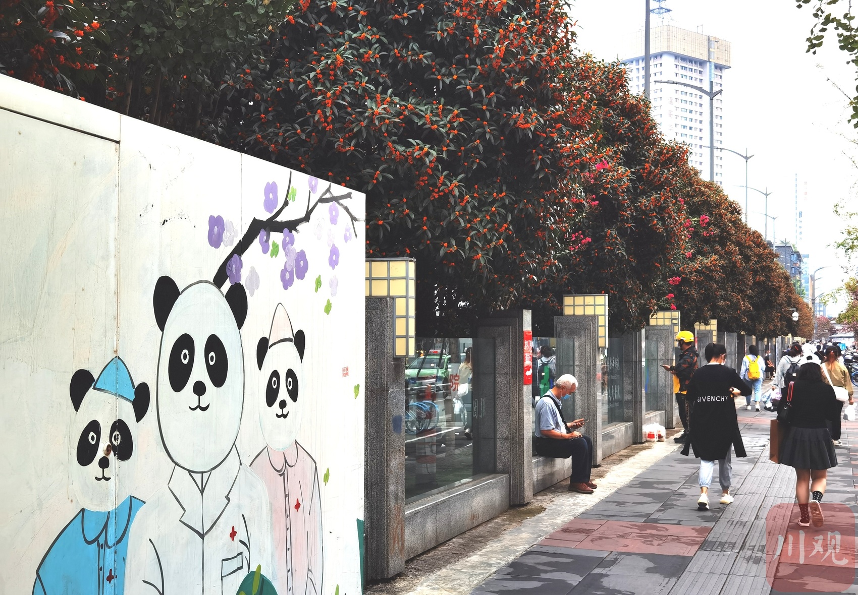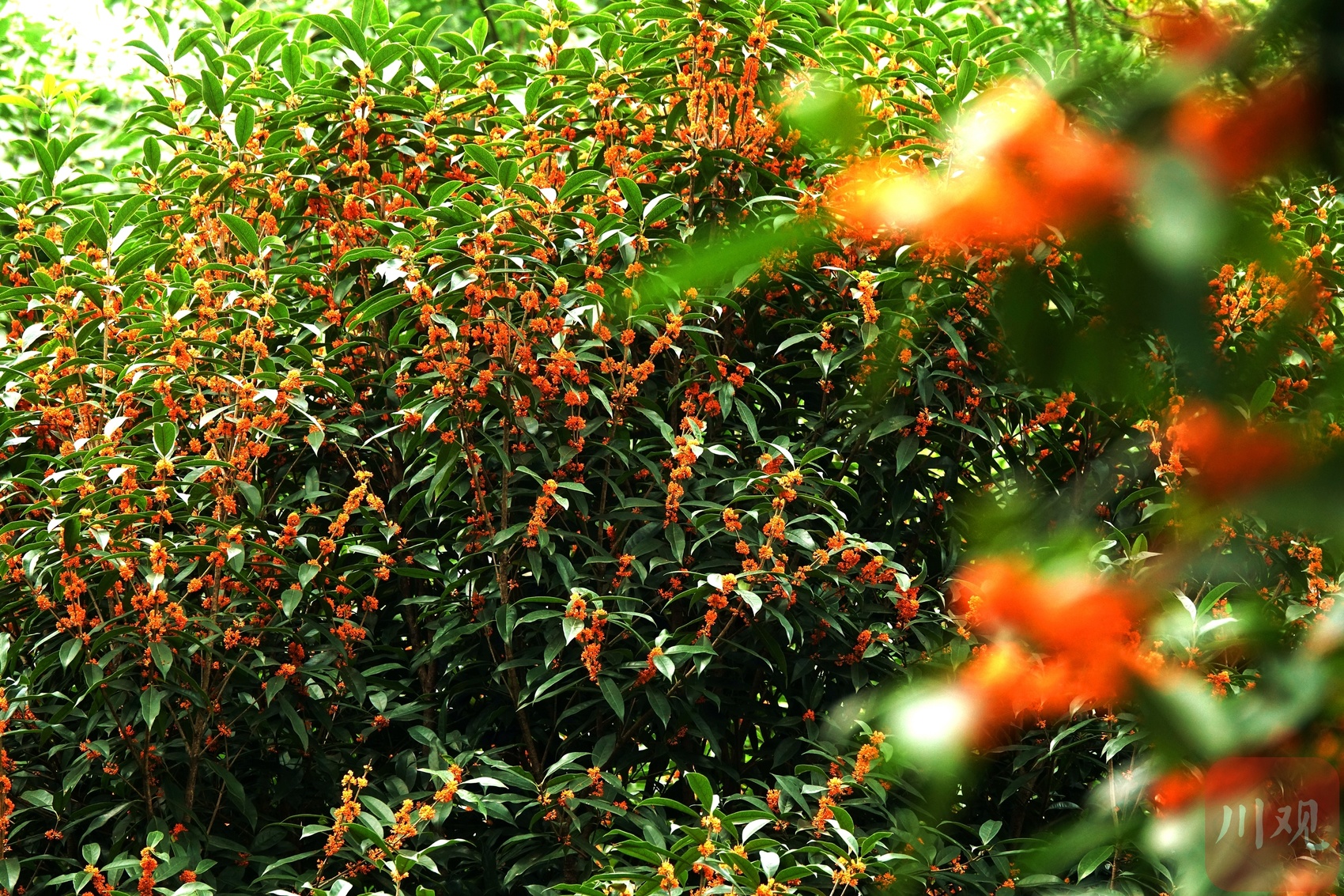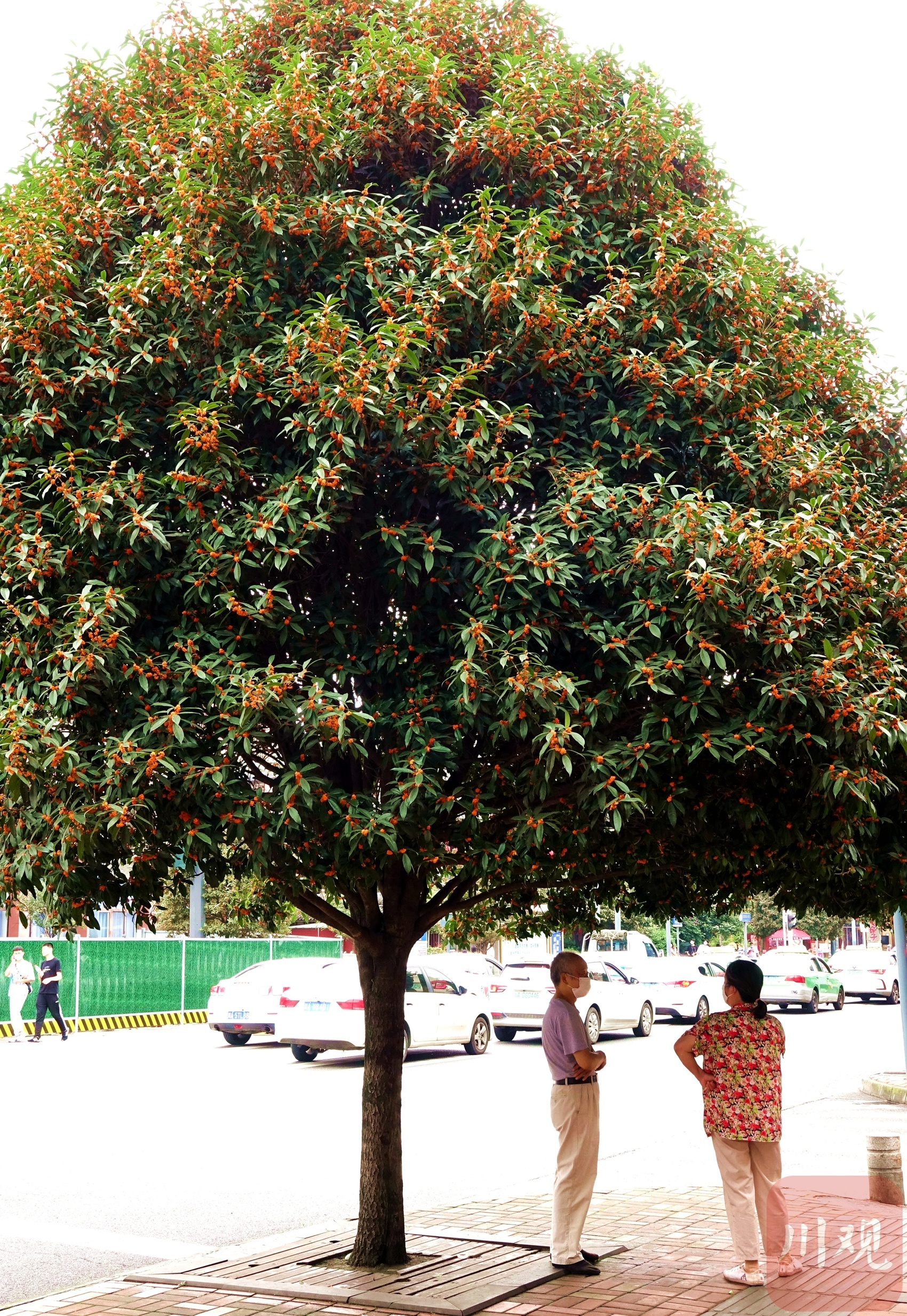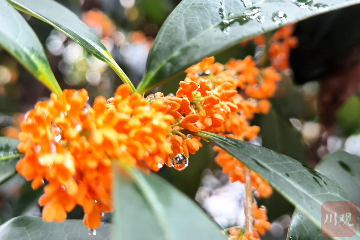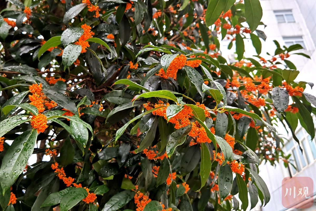 秋分已过,伴随着阵阵秋雨,成都的大街小巷桂花飘香,行道上一排排桂花树上绽放出朵朵小黄花,桂花香浓沁人心脾,微风吹拂,花枝招展,满街桂花树,满树桂花香,花开闹市,朵朵醉人。