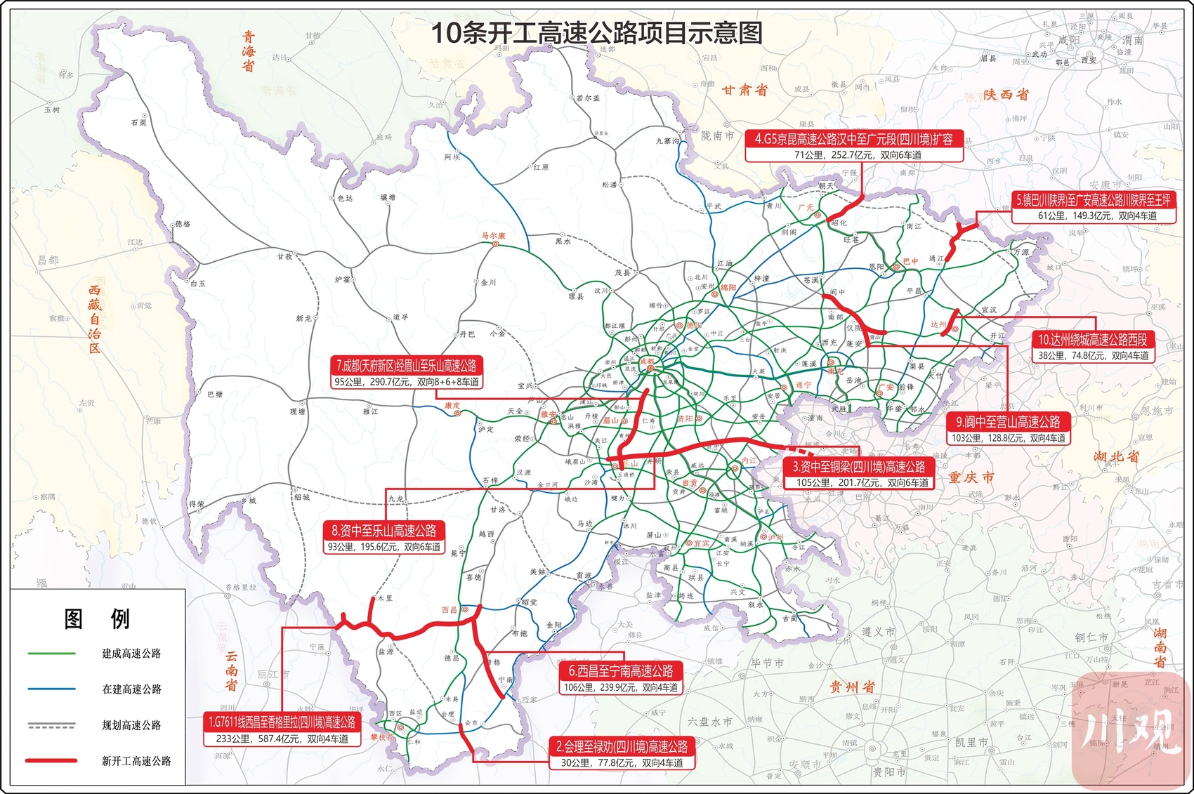 就在9月26日,四川又有10条高速公路开工,在成渝地区双城经济圈的交通轴线、在北向南向东向的出川大通道、在大小凉山深处,多个重点控制性工程按下启动键,朝着全年力争完成2000亿元投资量冲刺。