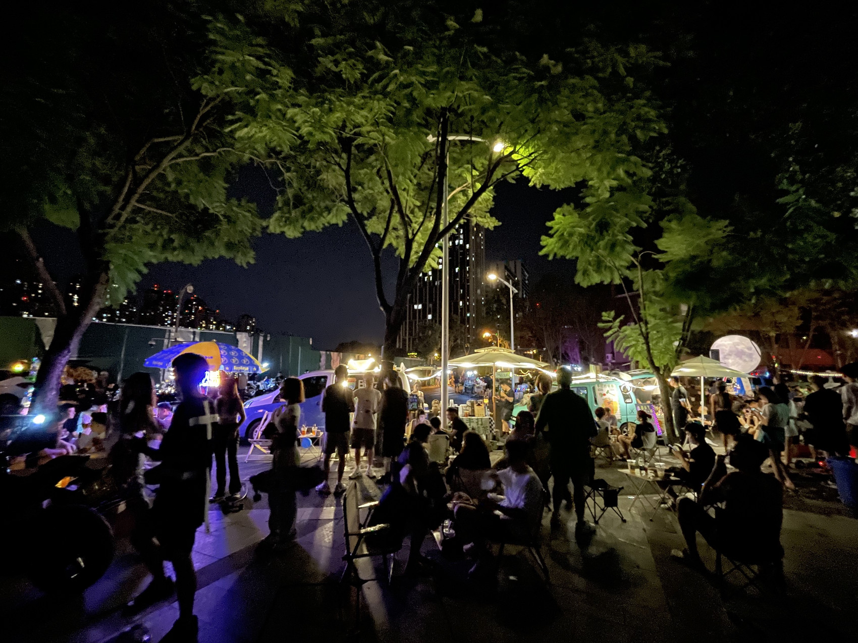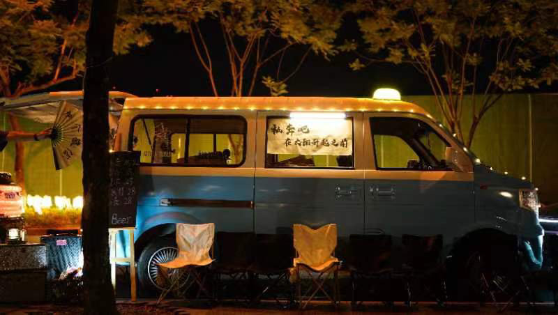 9月25日晚,夜幕低垂,华灯初上,一排私家车整齐停靠在成都锦江公园国华街wood park轻极限运动公园旁,后备箱打开悬挂着横幅,缠绕上暖光小灯泡,车子旁摆上桌子、折叠椅……这些“后备箱”准备迎接成都夜生活的来临。