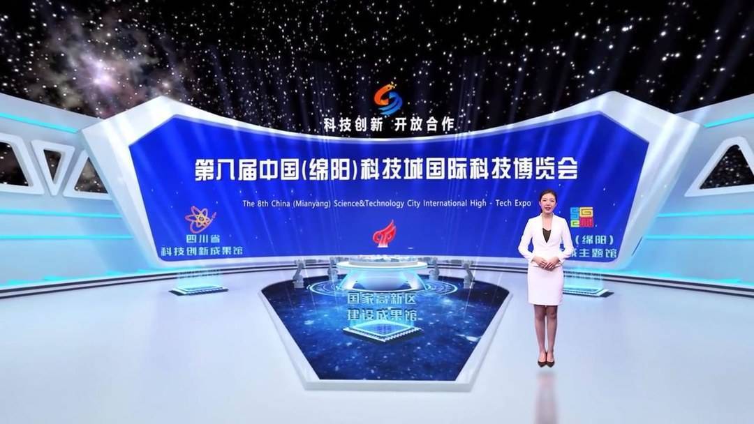 点击科博会logo,进入本次云展的第一个展馆“序厅”。“虚拟序章墙”、“虚拟传送光柱”.....在序厅360度环顾一周,有融入绵阳会展中心的建筑元素,也有拥抱科技、拥抱未来的沉浸式体验。