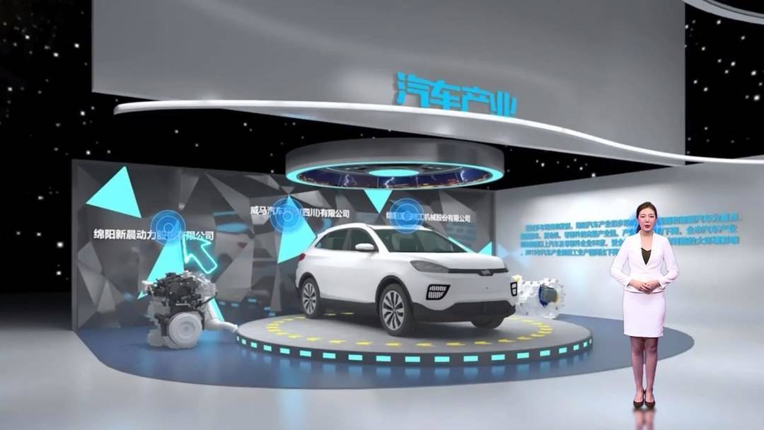 首先,重点产业发展展区聚焦绵阳6大重点产业,包括电子信息产业、汽车产业、高端制备制造、新材料产业、节能环保产业、食品饮料产业。这片区域共有20个精品展位,展出50个3D建模的精品展品。