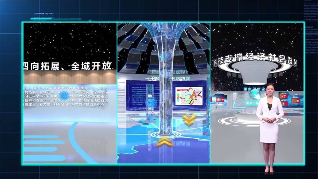 首先在四川省科技创新成果馆“C位”点击光标按钮,可以看到四川科技发展背后的故事和丰功伟绩,了解四川省在创新能力提升、创新资源集聚、科技攻关等方面拿到的显著成效。