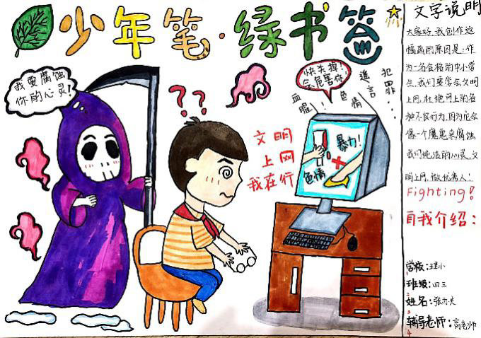 此外,成都市少城小学、内江市第十小学等学校纷纷举办了以“绿书签行动”为主题的主题班会及手抄报制作、评比活动。班主任老师带领同学们举行“扫黄打非”主题班会,通过播放教育视频,让同学们了解非法出版物的危害。同学们利用课余时间查找资料,设计手抄报,用手中的画笔来勾勒心中的“绿书签”。在四川省“扫黄打非”办的指导下,《少年时代》杂志还开展了“少年笔·绿书签”专题作品创作征集活动,目前已收到作品近千份。