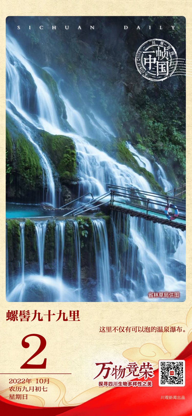 螺髻九十九里以瀑布景观最负盛名,2013年被世界纪录协会认定为“世界最大温泉瀑布”。当你步入景区,便可见莹白的泉水从半山悬崖处跌落,似美人的水袖缱绻于青山松柏间,形成一处处形态不一的瀑布。