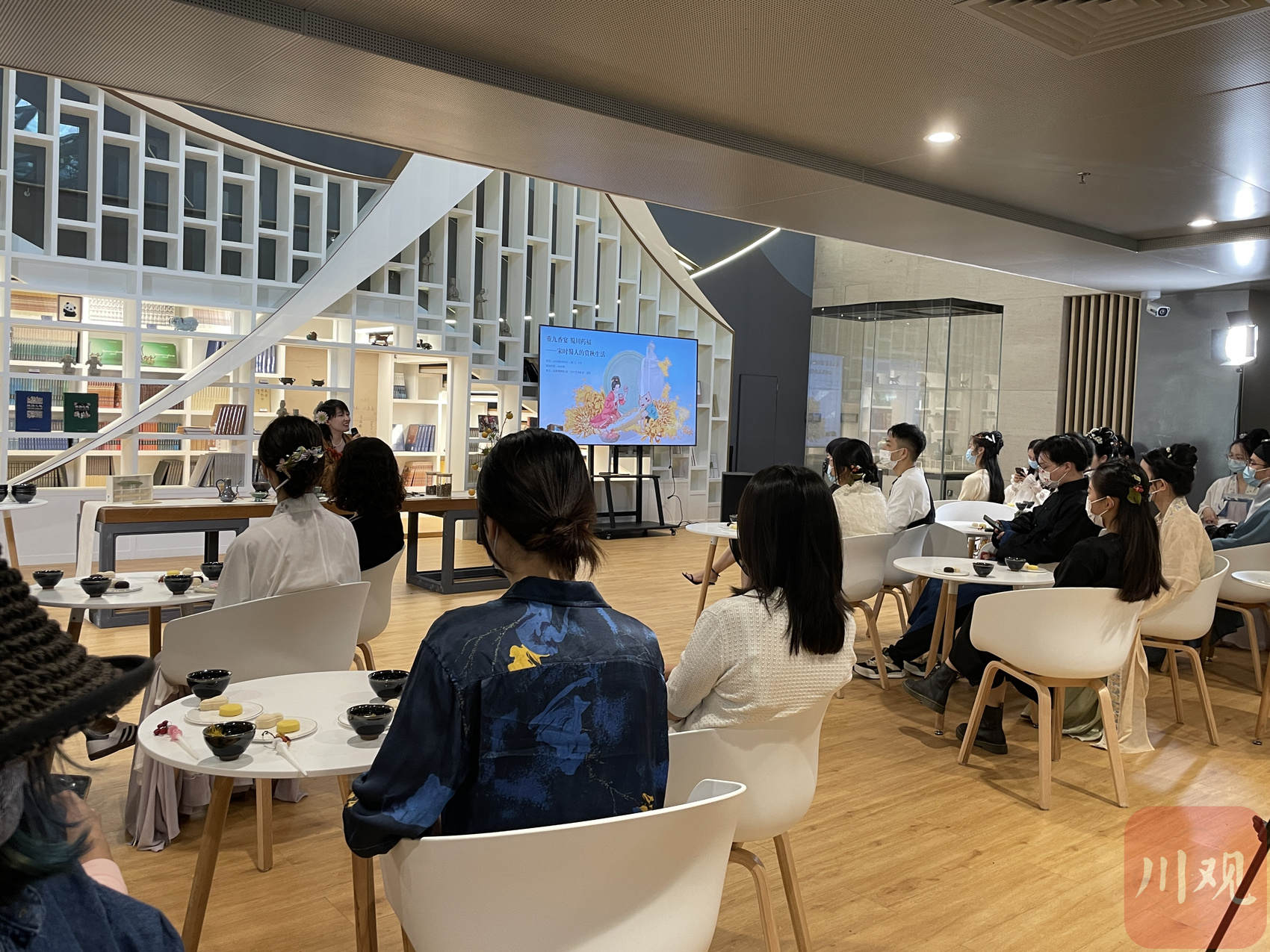 9月28日下午,农历重阳佳节来临前,成都博物馆举行“重九香宴 蜀川药福——宋时蜀人的赏秋生活”线下体验活动。近30位受邀参加此次活动的市民身着传统中式服装、遍插茱萸,透过杯中饮、盘中糕、席中香,体验宋时蜀地的重阳节俗。