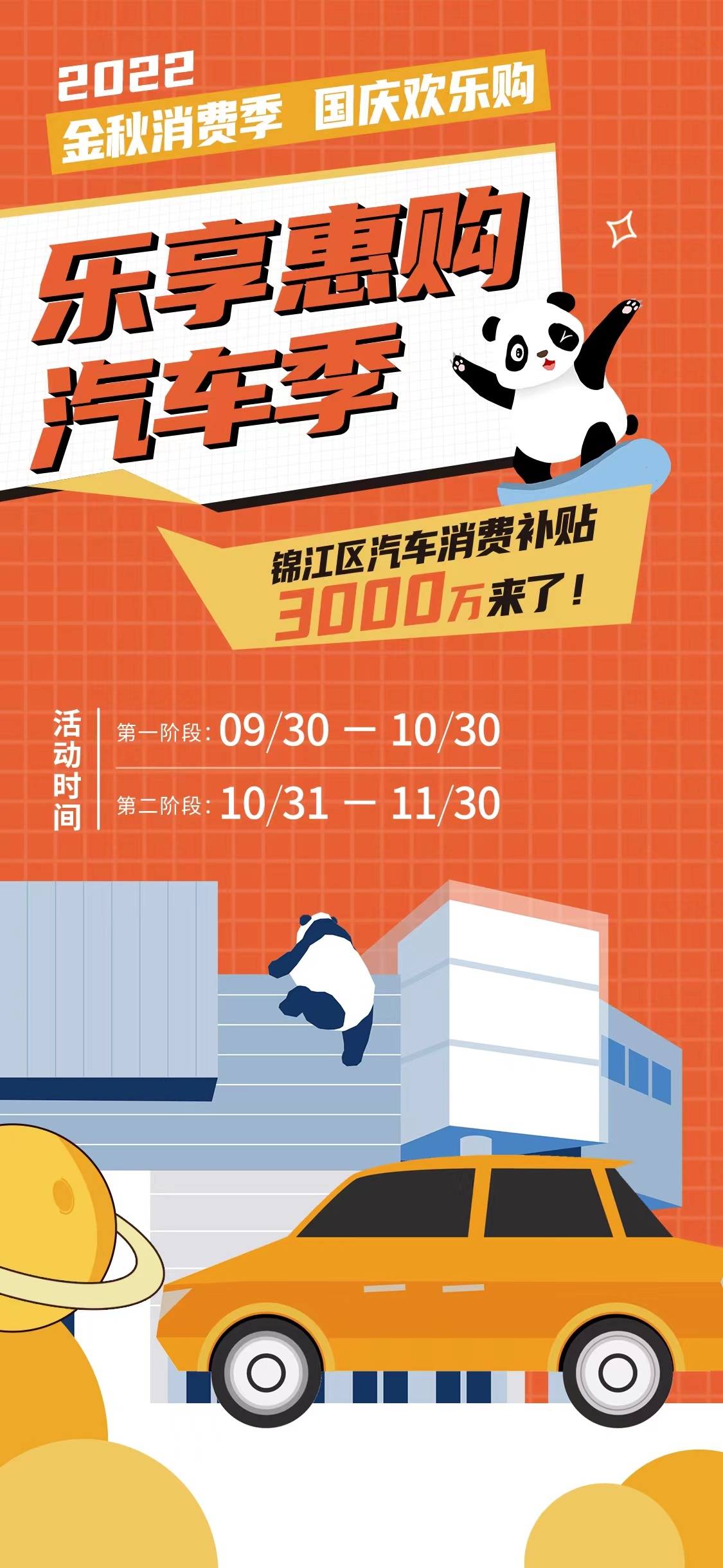 国庆长假将至,“买买买”模式又将开启。9月30日,成都市锦江区启动“乐享惠购汽车季”消费补贴活动,拿出3000万元真金白银补贴消费者购车,最高可补贴3200元,活动将持续至11月30日。与此同时,锦江区的各大卖场也推出促消费“组合拳”,让成都本就浓厚的市井烟火气旺上加旺。
