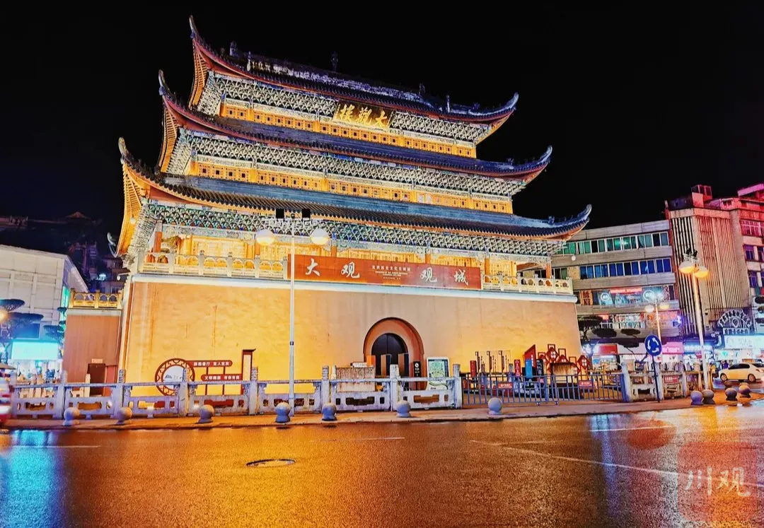 说起宜宾历史文化名城的标志性建筑,就挪不开拥有“宜宾小天安门”之称的大观楼,经历了五百年的风霜雨雪,见证了宜宾城的城市变迁。到了大观楼,东街夜市不容错过,当城市的街灯亮起,东街夜市正式开启,玩具摊、美食摊、美妆个护,应有尽有,人潮汹涌,是宜宾烟火气的代表之地。