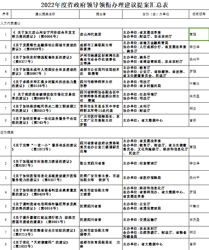 【图:2022年度省政府领导领衔办理建议提案汇总表】