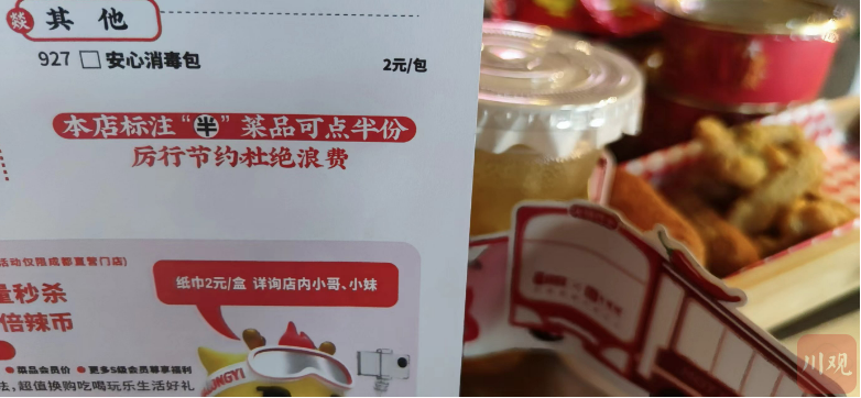 在成都市锦江区东升街的一家网红火锅店,记者在菜单中看到,大部分的菜品都注明了可以点半份。