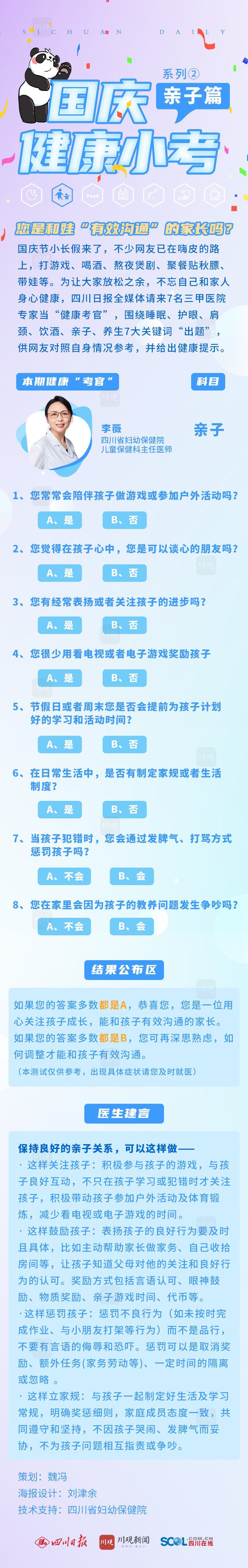10月2日,我们为假期带娃的家长们送上第二期——四川省妇幼保健院儿童保健科主任医师李薇当“考官”,您可测一测,平时和娃在“有效沟通”吗?