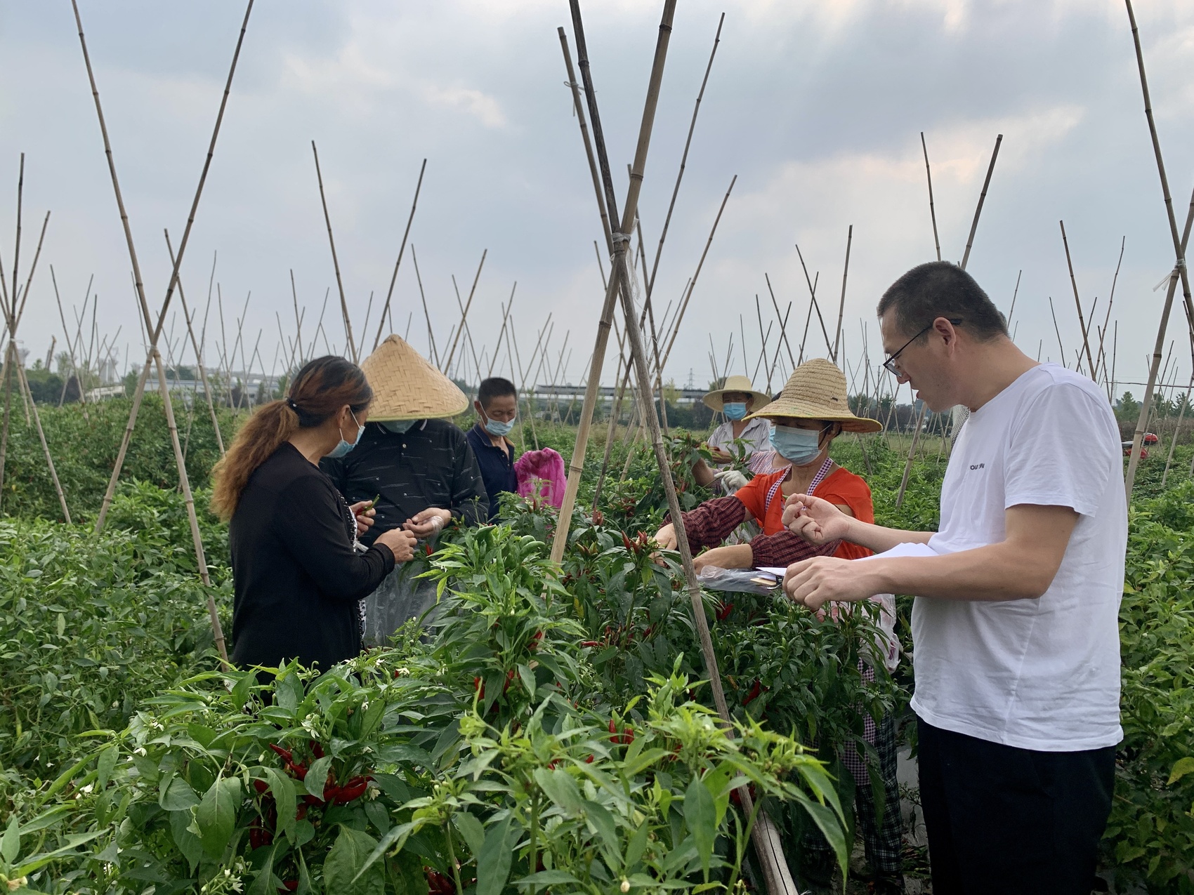 席亚东查看新都试验种植基地工人们收获辣椒情况。