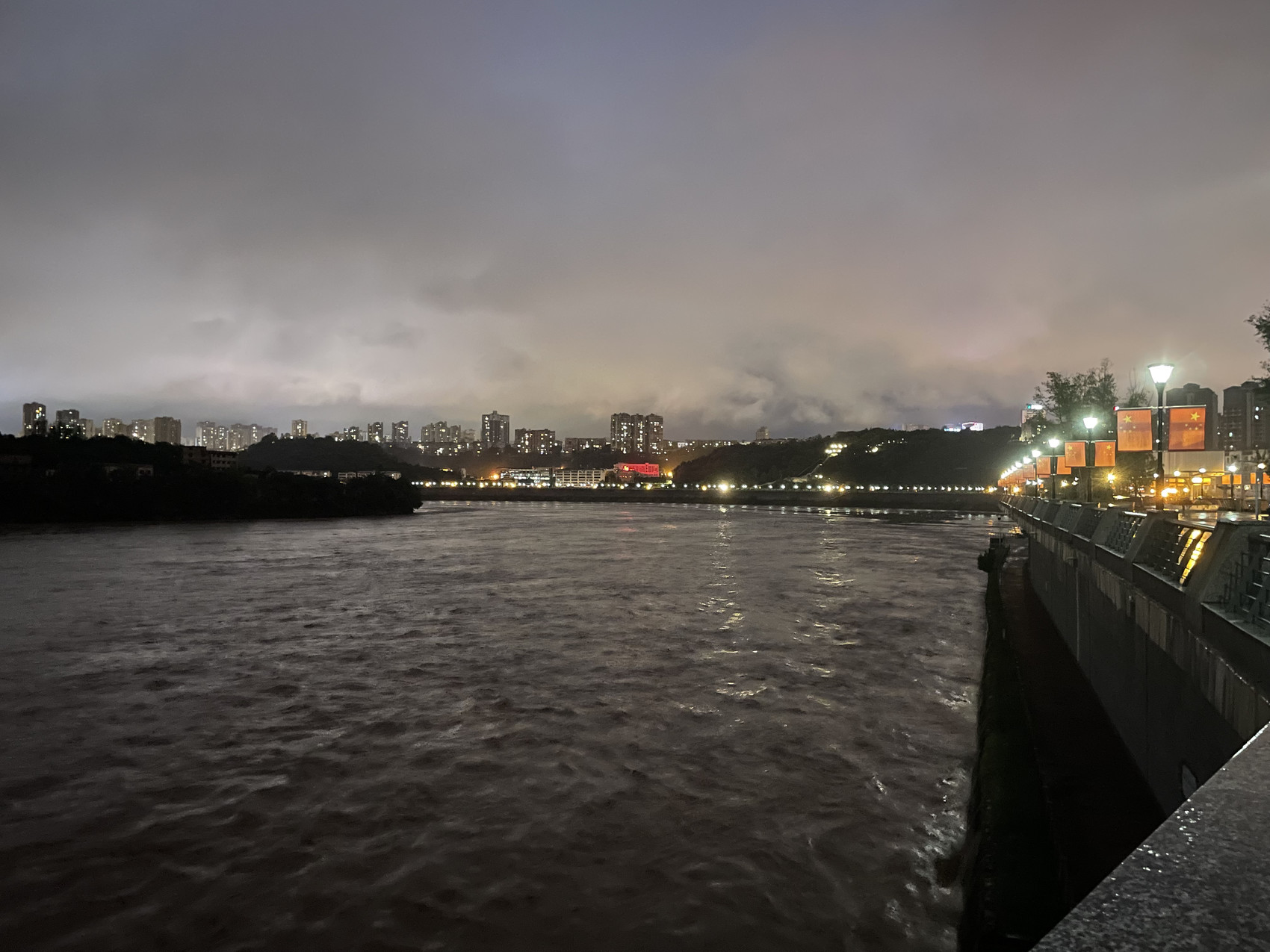 广安区主城区渠江防洪堤处,水位缓慢上升。 邓林灵 摄