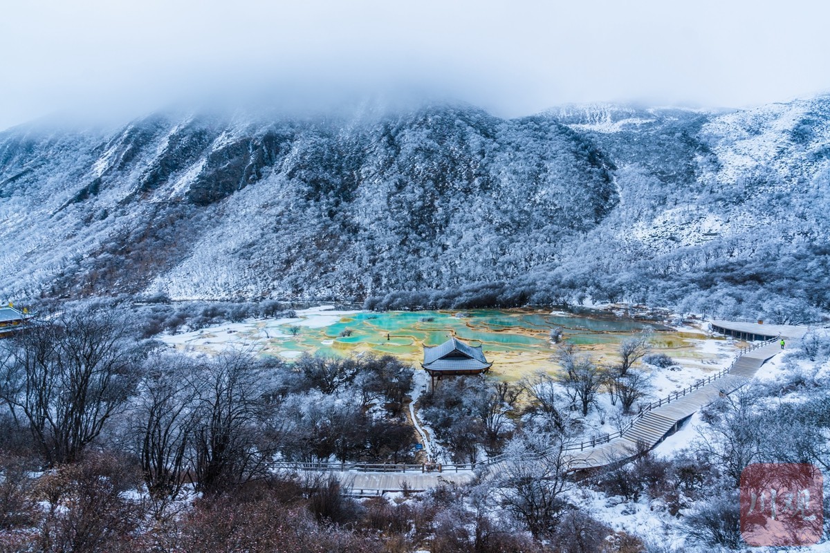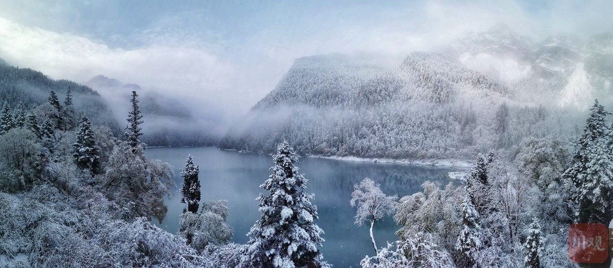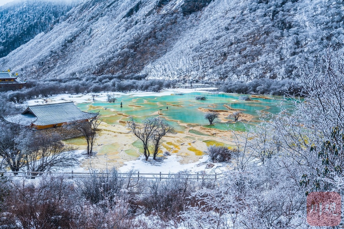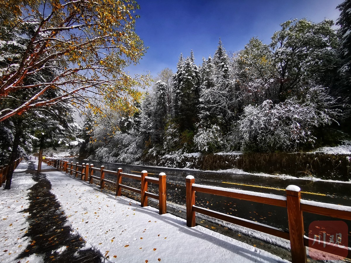 据介绍,从10月7日凌晨起,九寨沟景区就开始迎来降雪。当天这场雪还覆盖了黄龙景区等地,浪漫的白雪和绚丽的彩林交织在景区的每个角落。