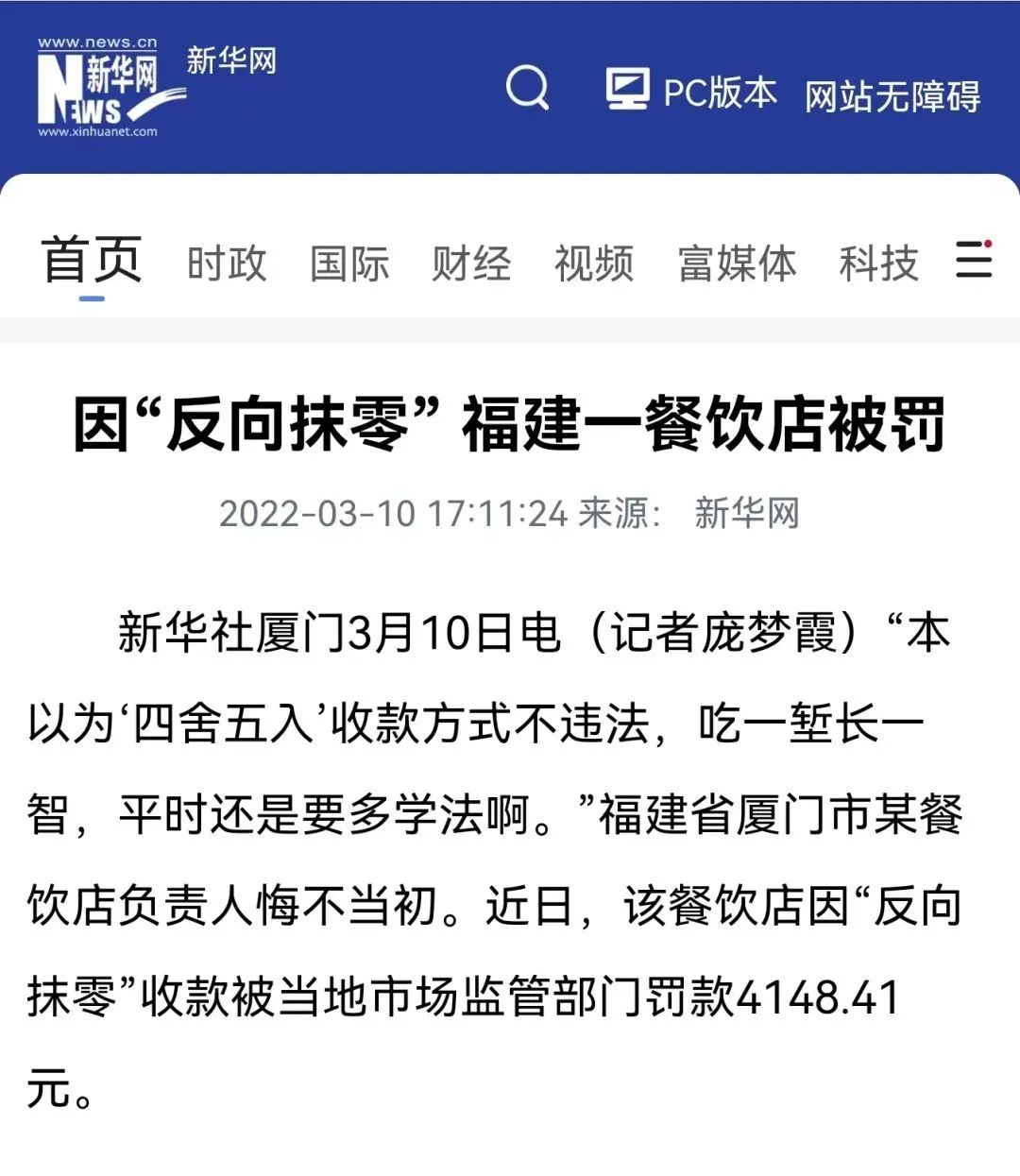 不法商家利用收款“四舍五入”、“反向抹零”等行为