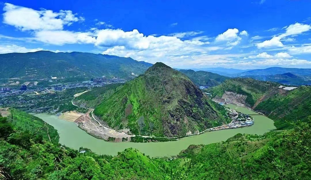 秋日站在攀枝花市炳草岗大桥上远眺,金沙江在山谷间流淌,一湾江水碧绿,两岸林木葱郁。远处,最大支流雅砻江汇入,两江交汇一路向东奔涌而去。